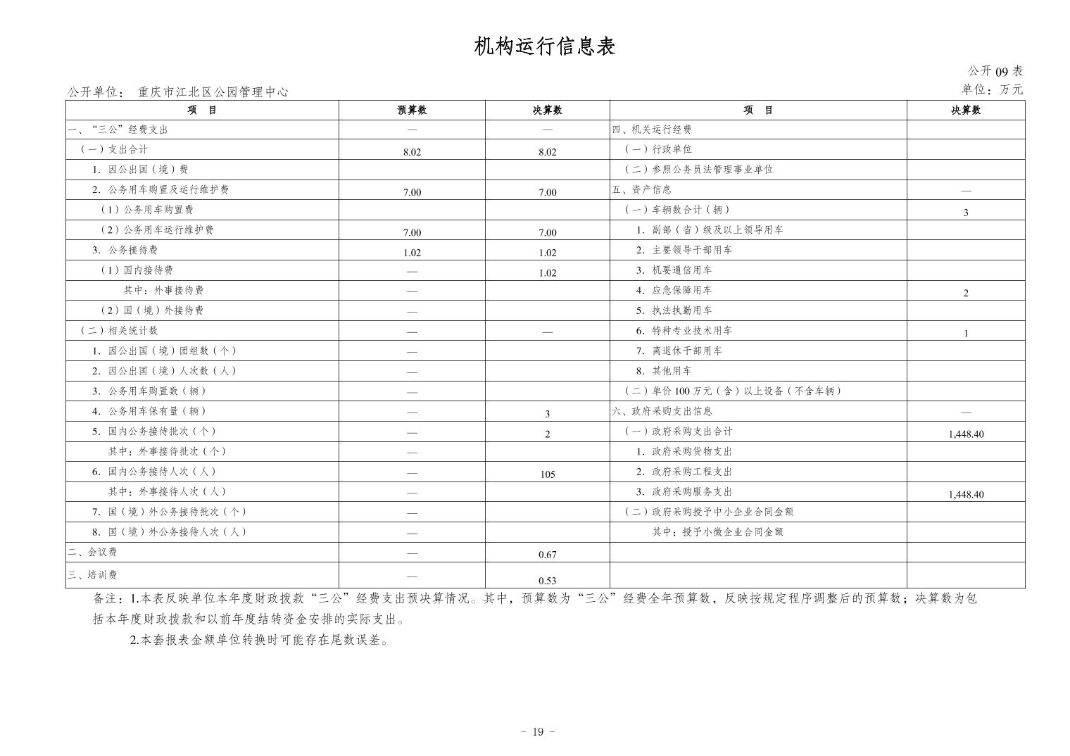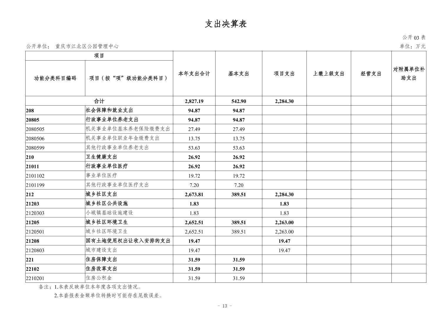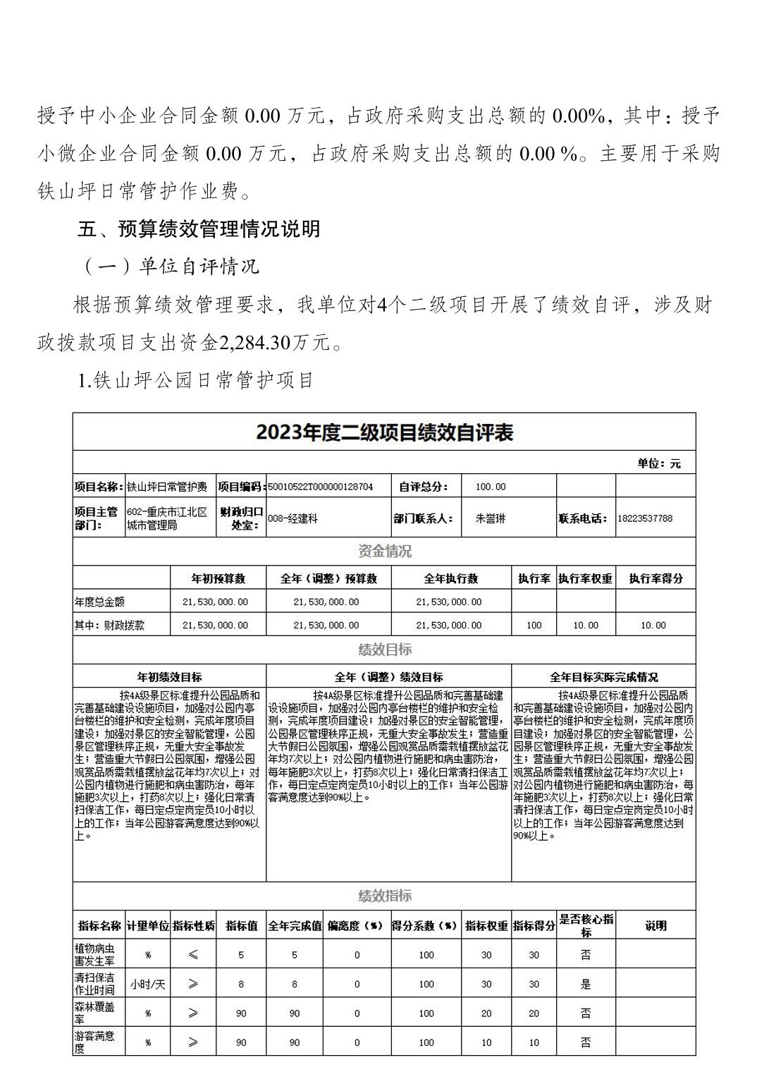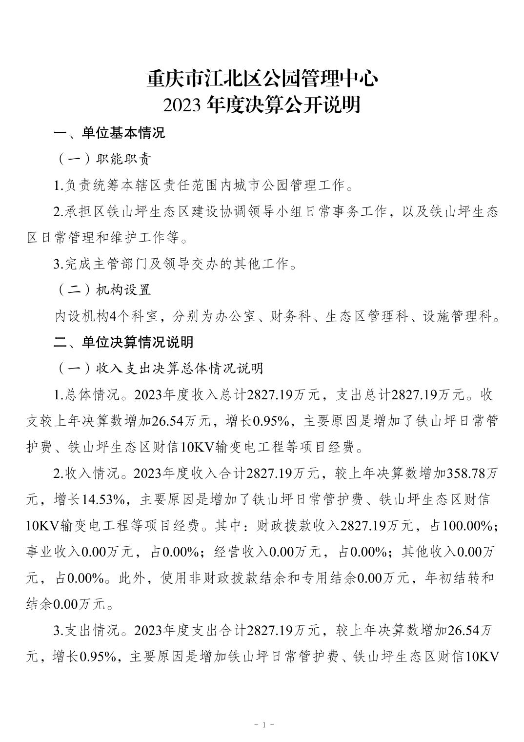 重慶市江北區公園管理中心2023 年度決算公開說明