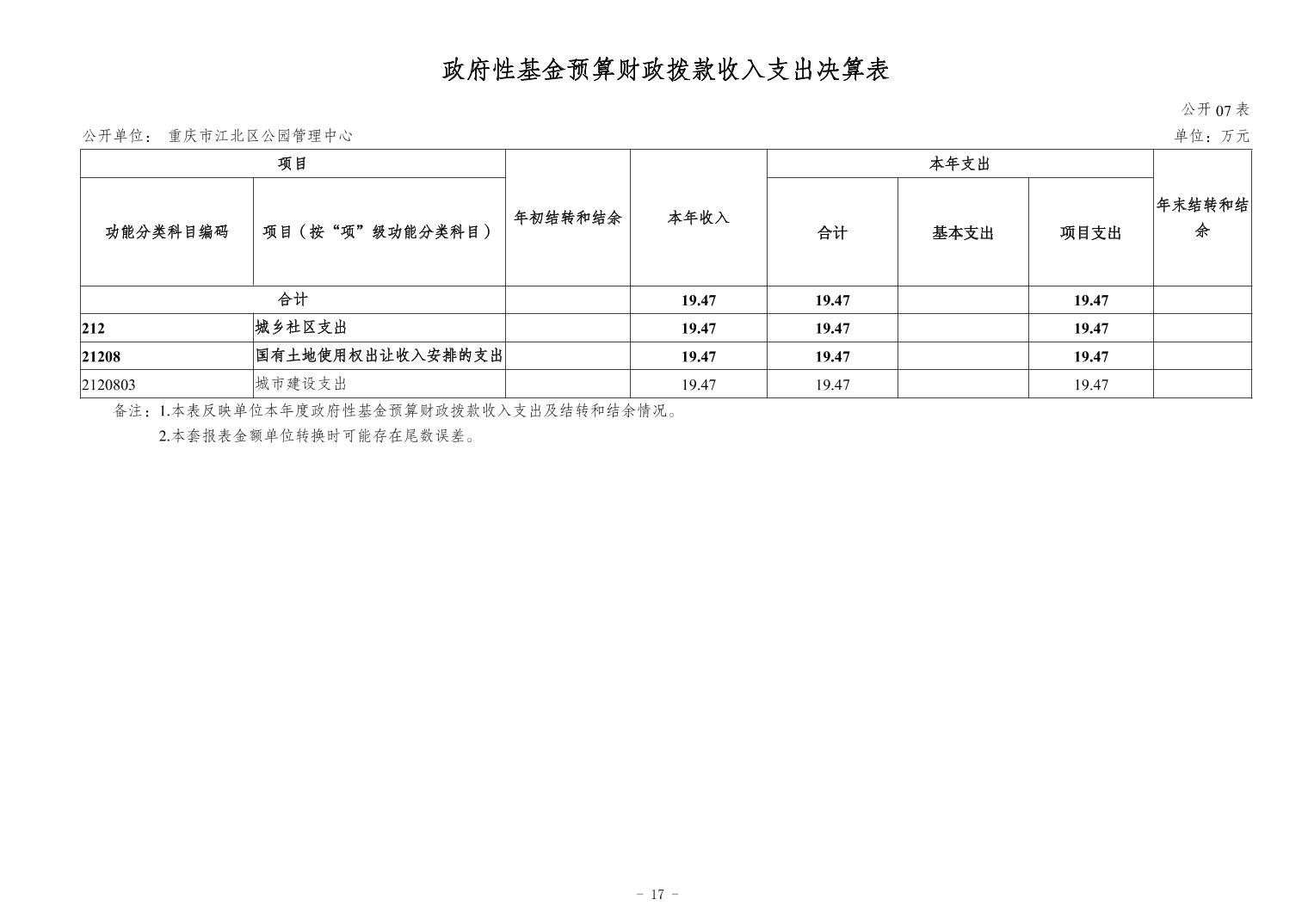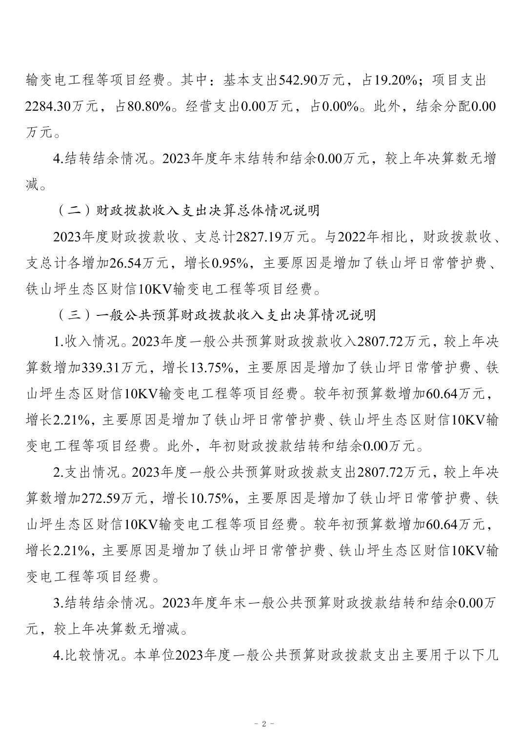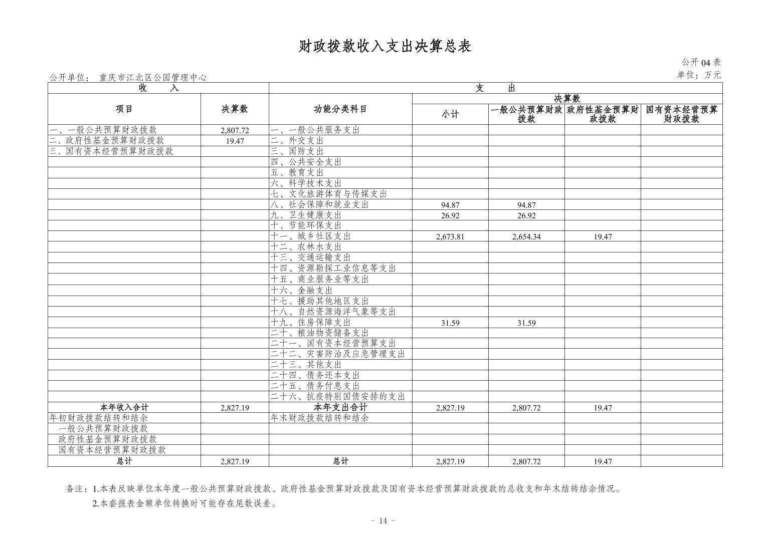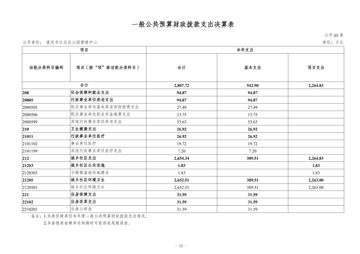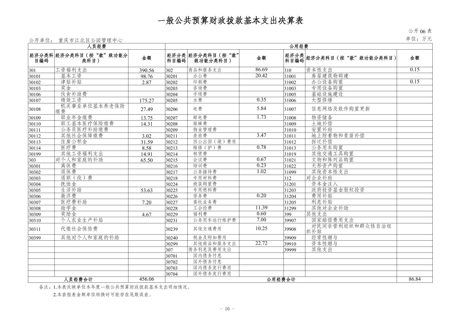 重慶市江北區公園管理中心2023 年度決算公開說明