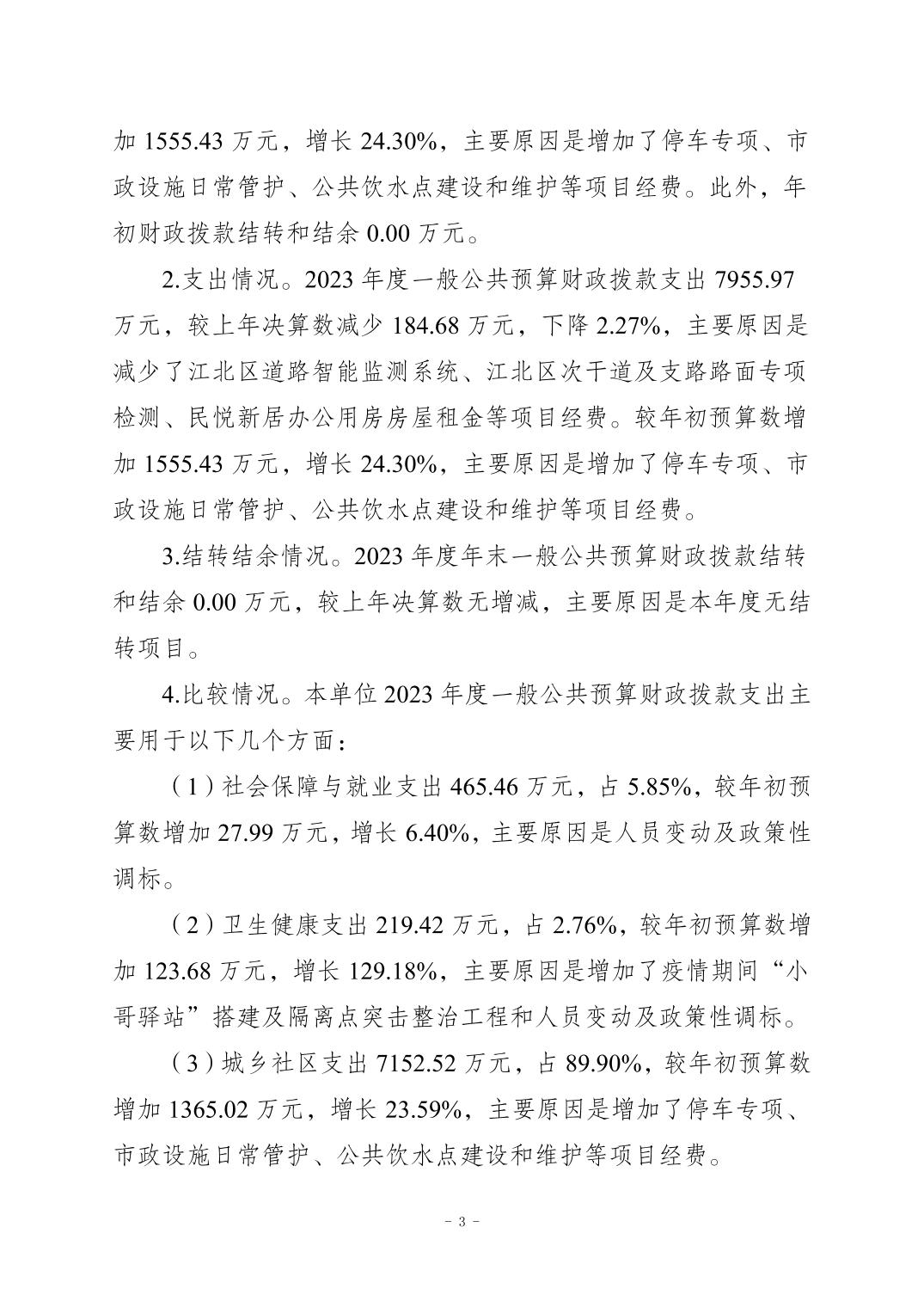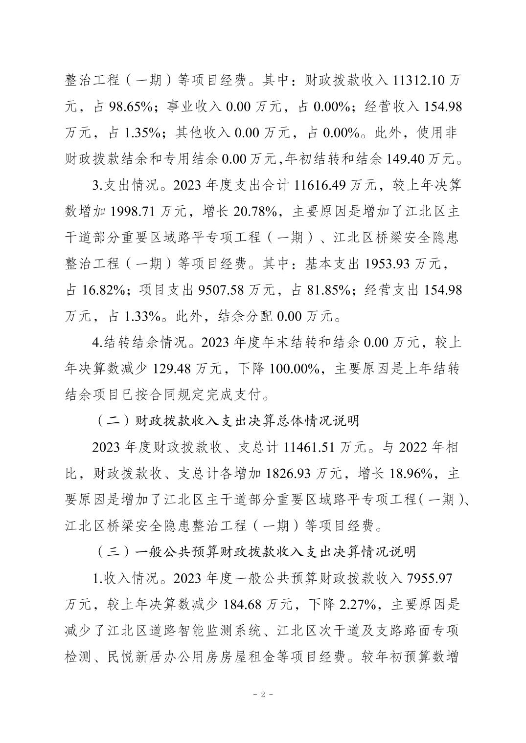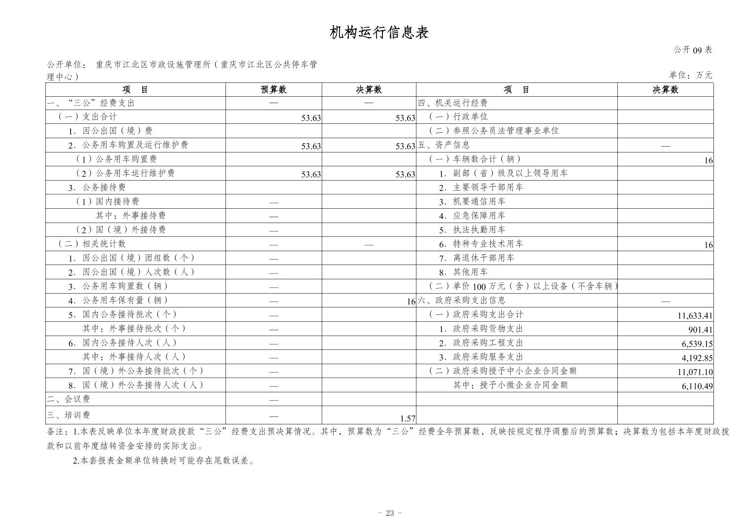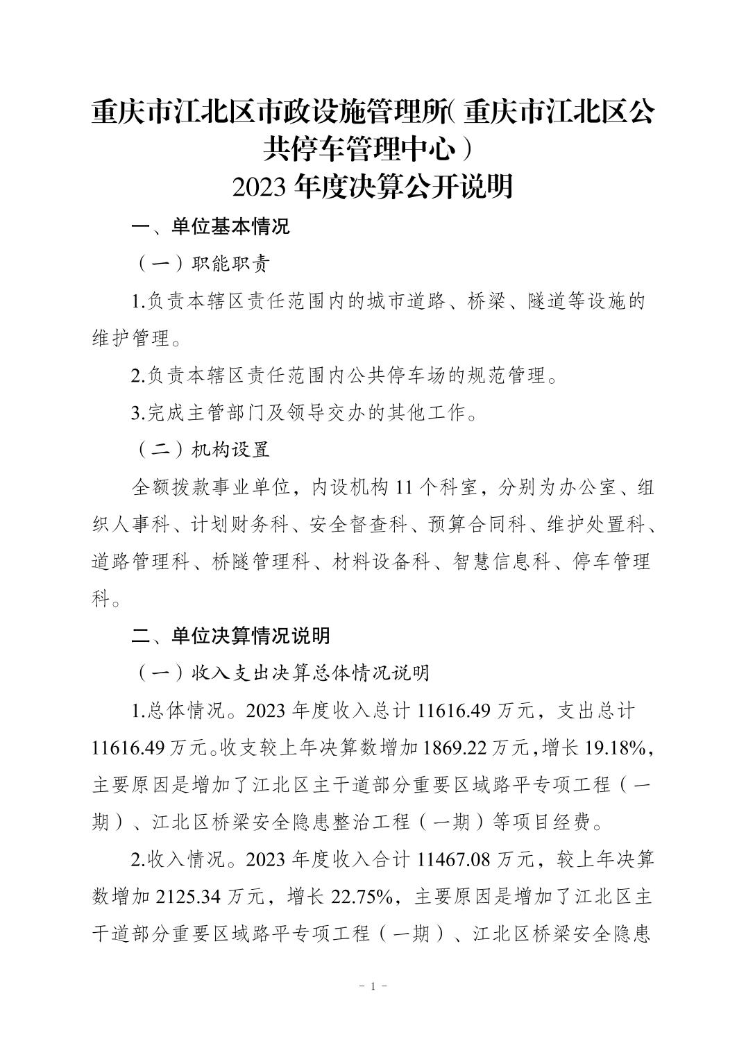 重慶市江北區市政設施管理所(重慶市江北區公共停車管理中心)2023 年度決算公開說明