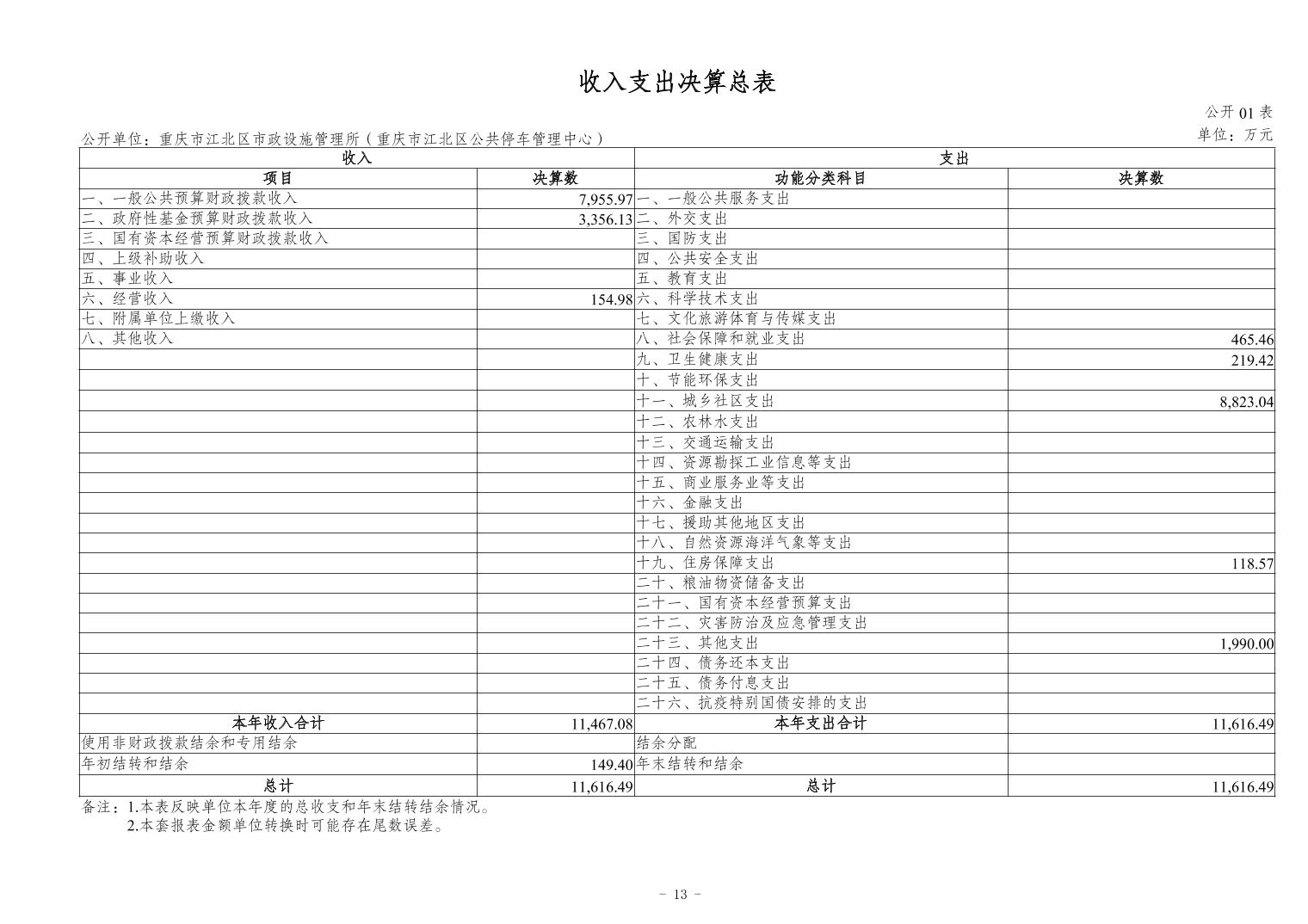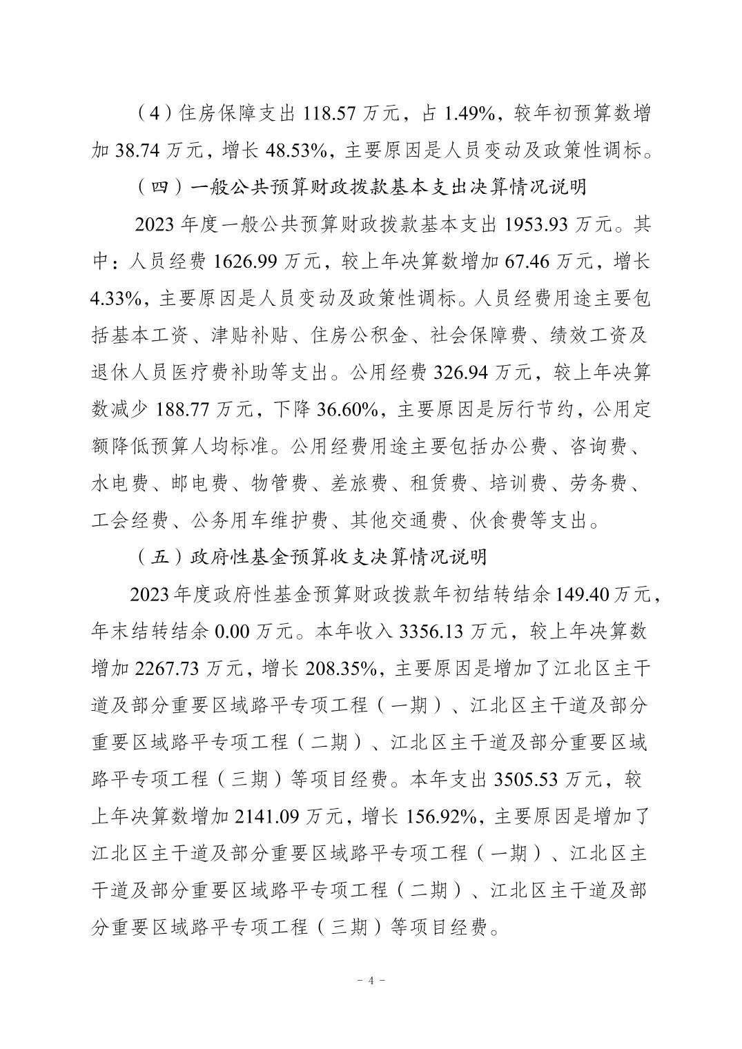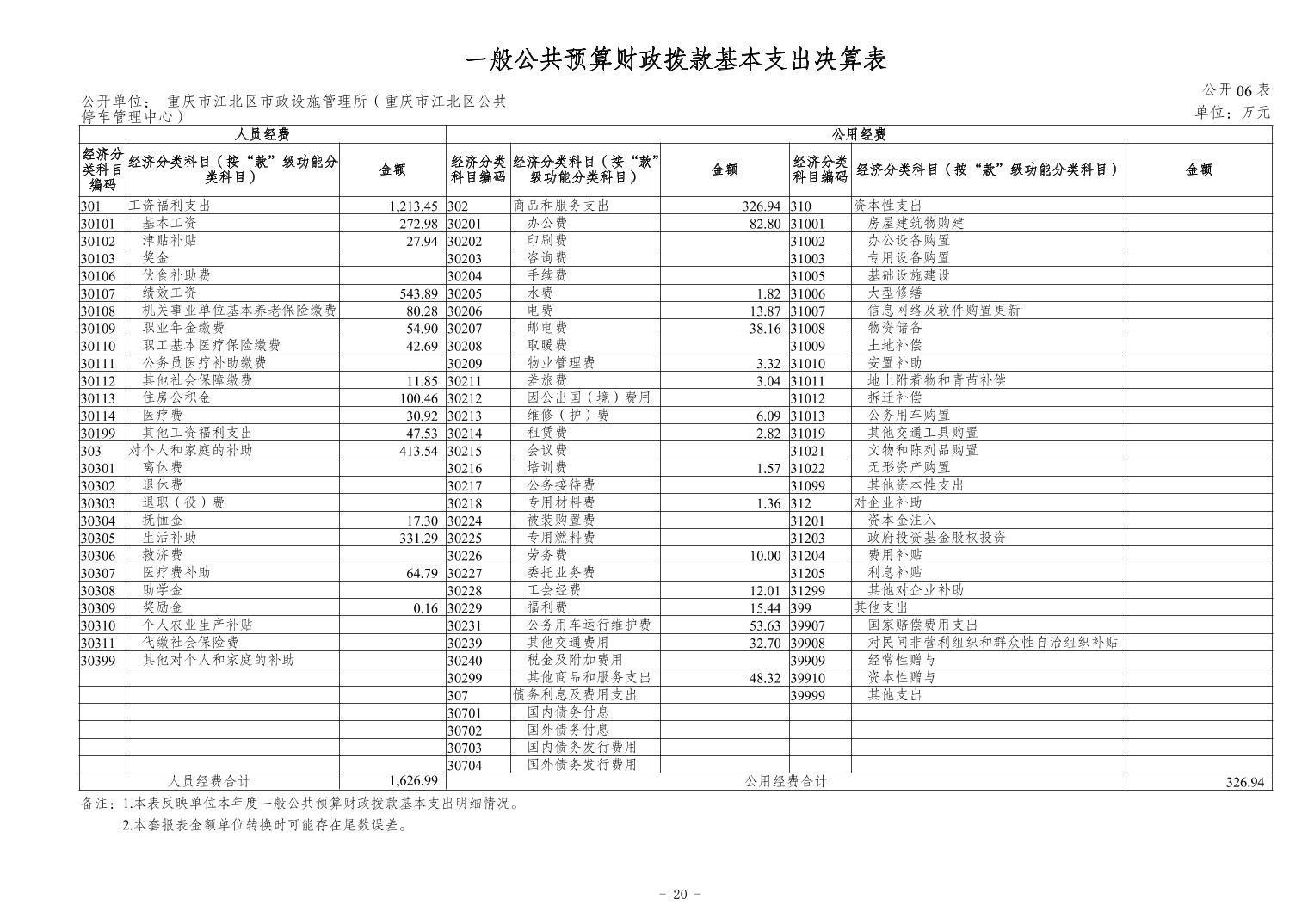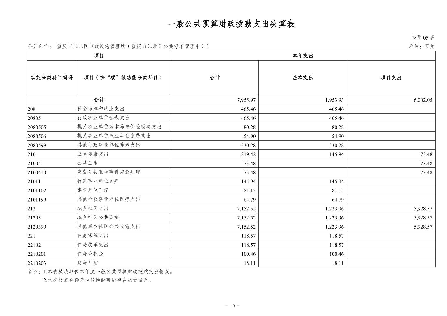 重慶市江北區市政設施管理所(重慶市江北區公共停車管理中心)2023 年度決算公開說明