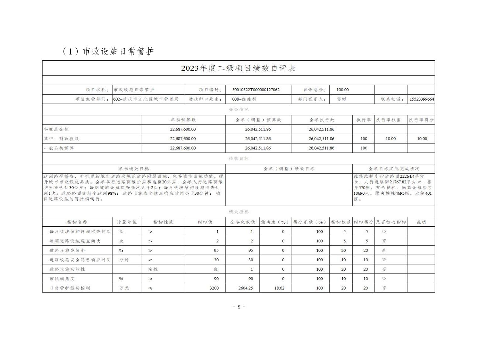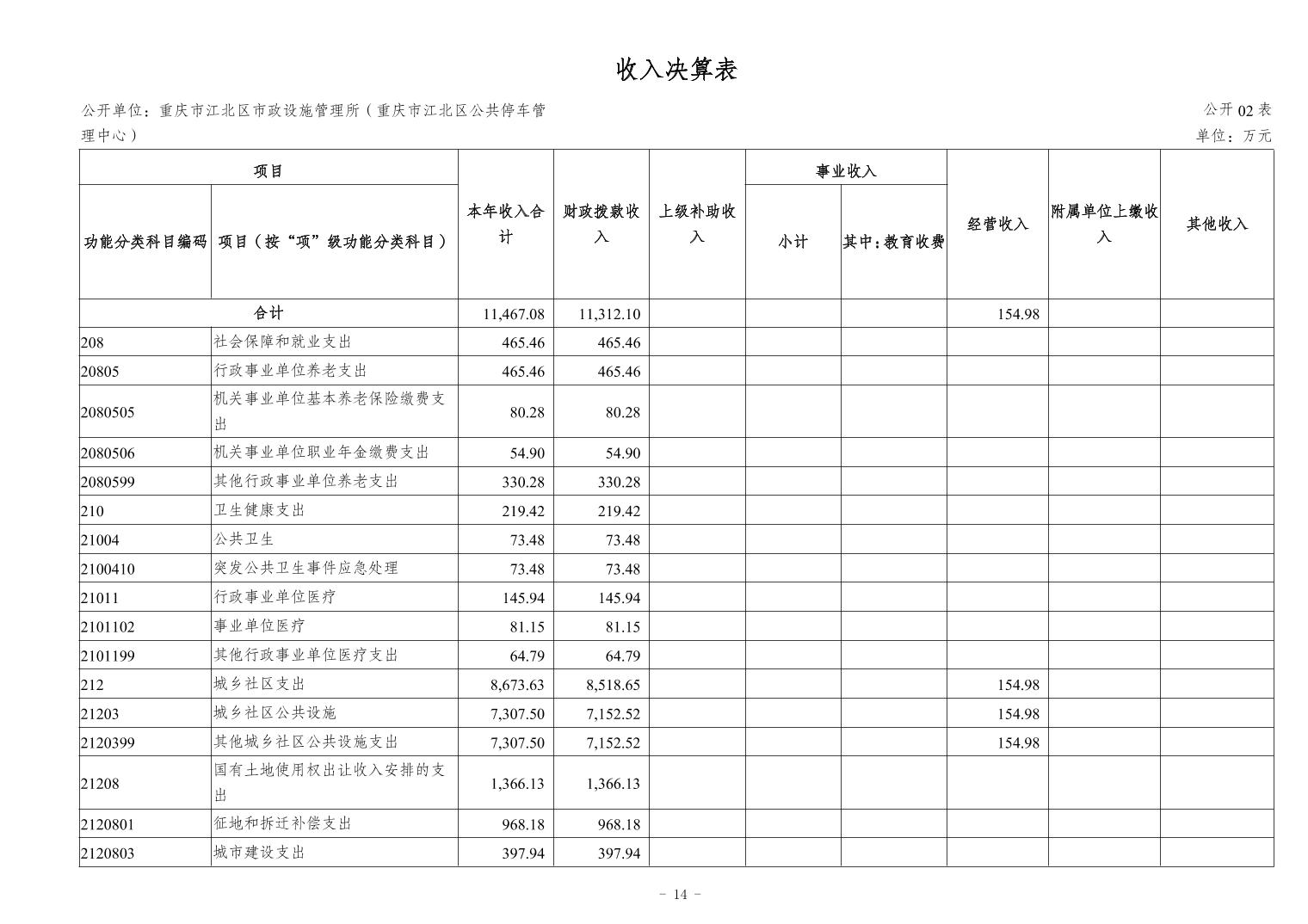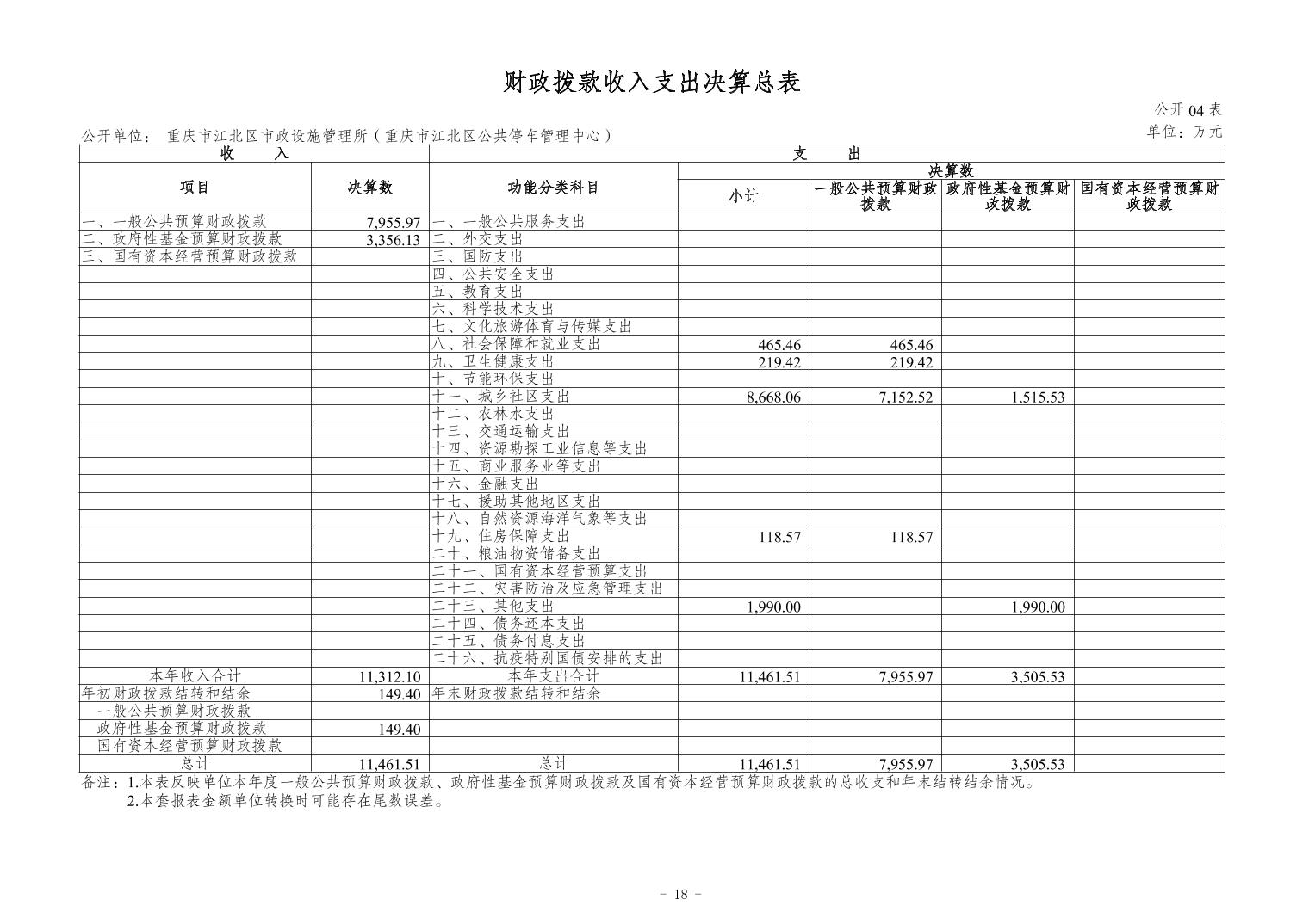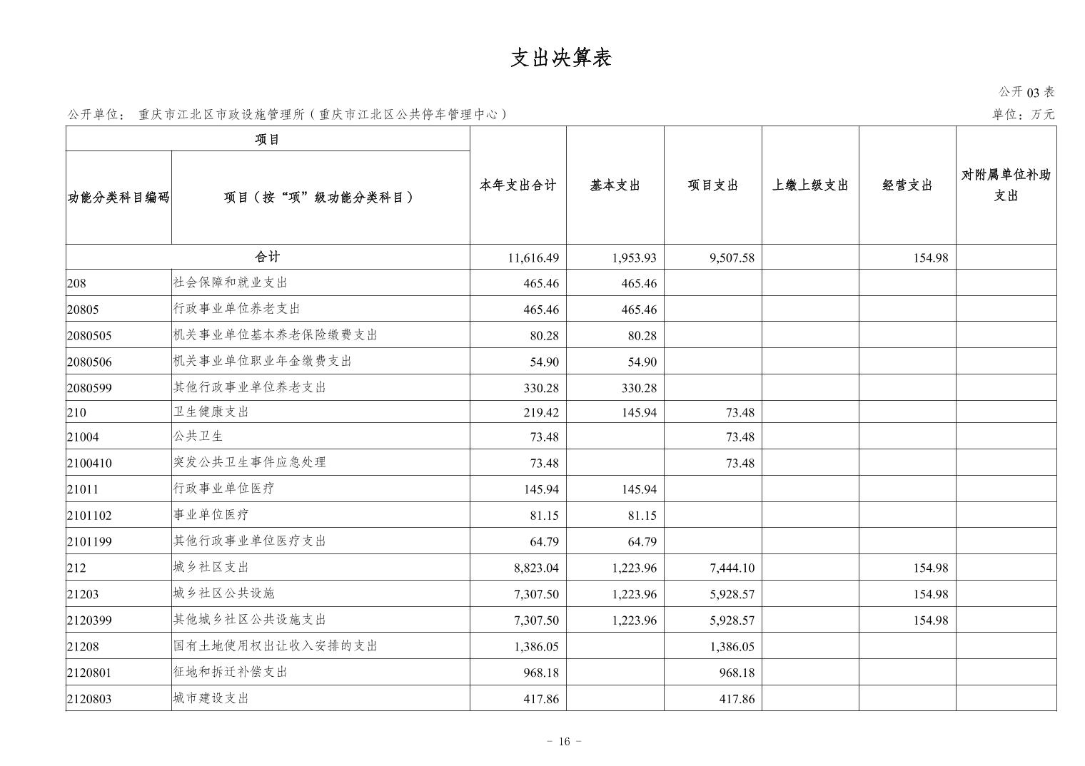重慶市江北區市政設施管理所(重慶市江北區公共停車管理中心)2023 年度決算公開說明