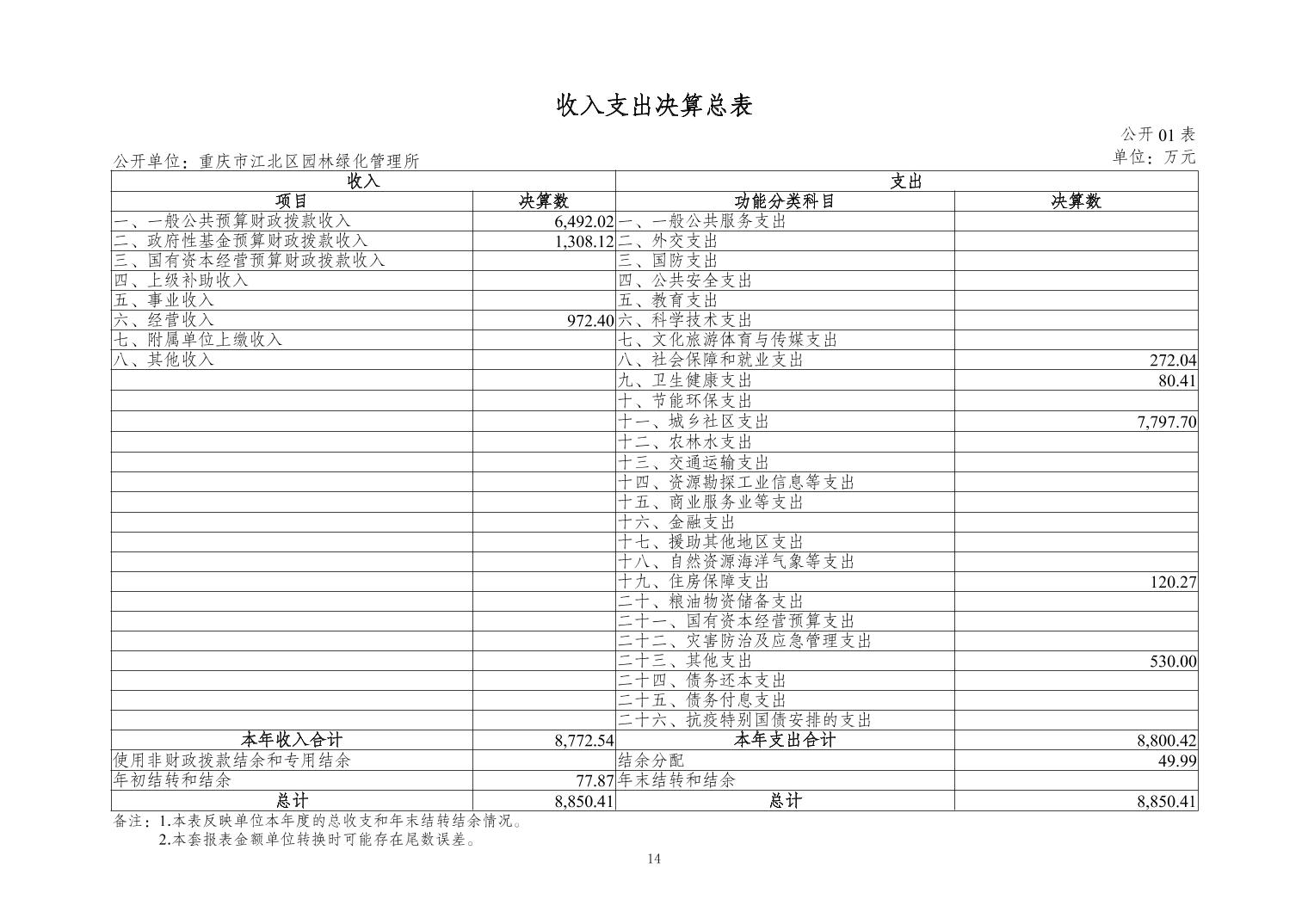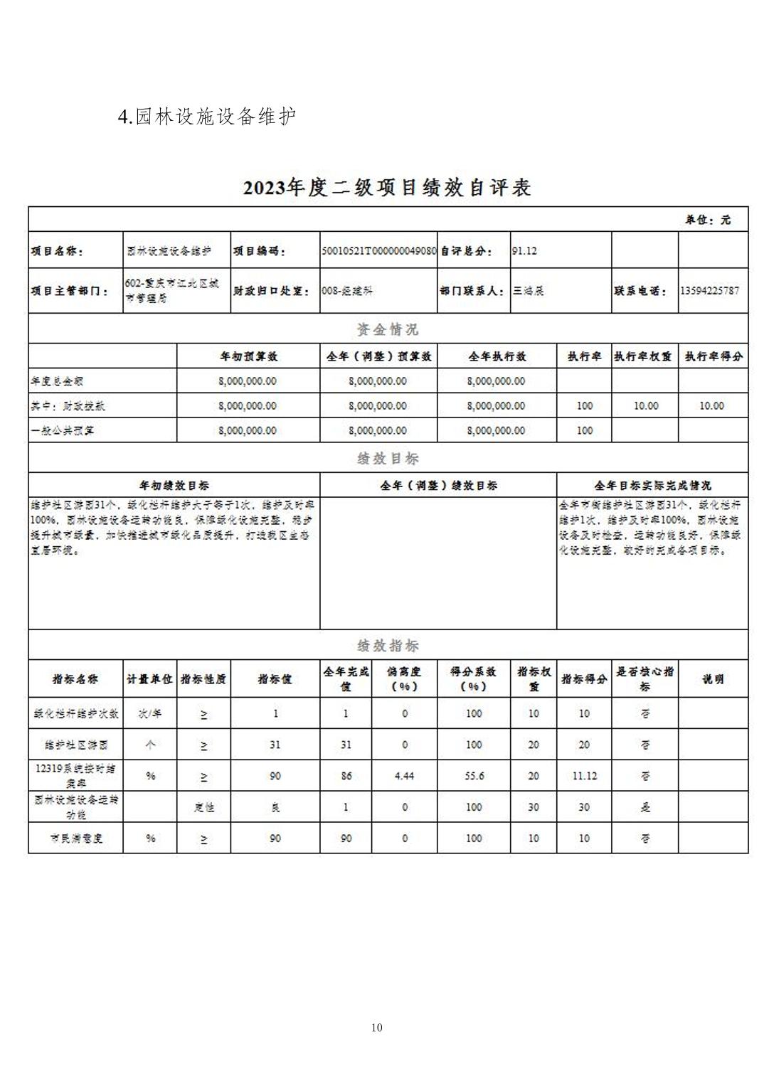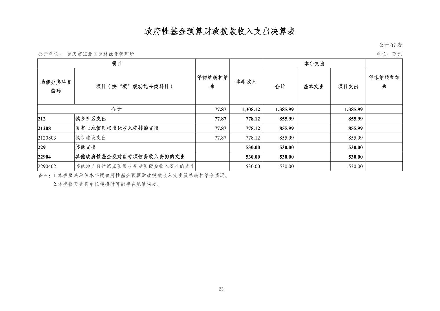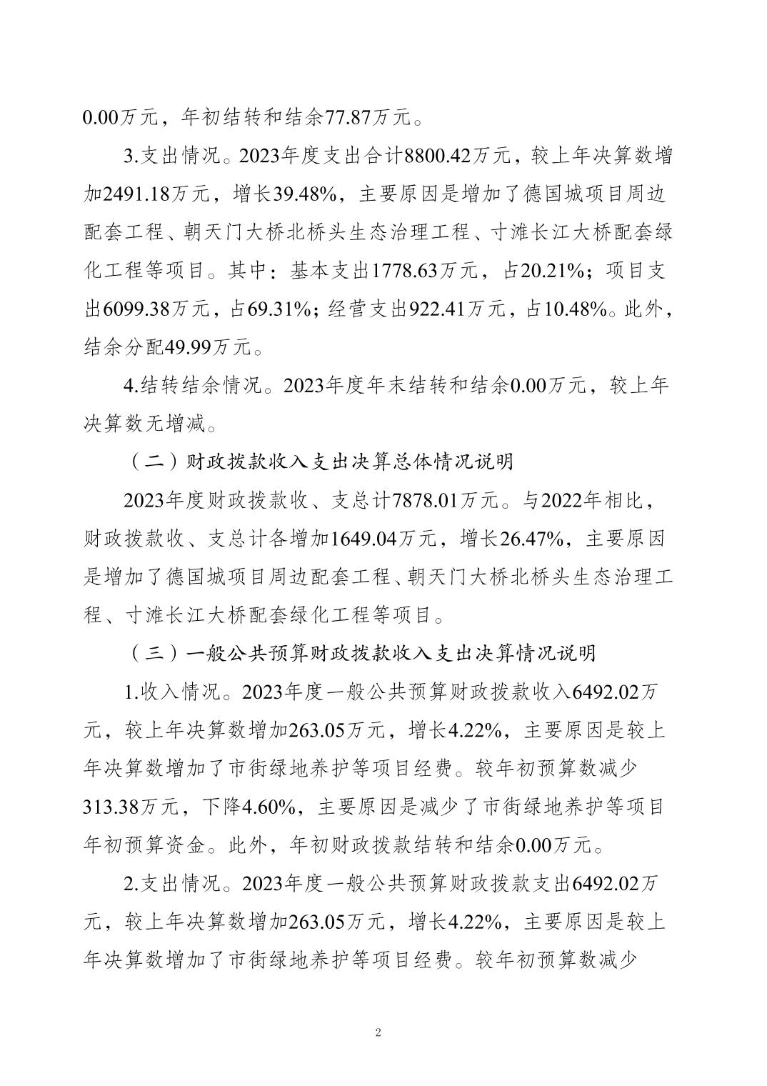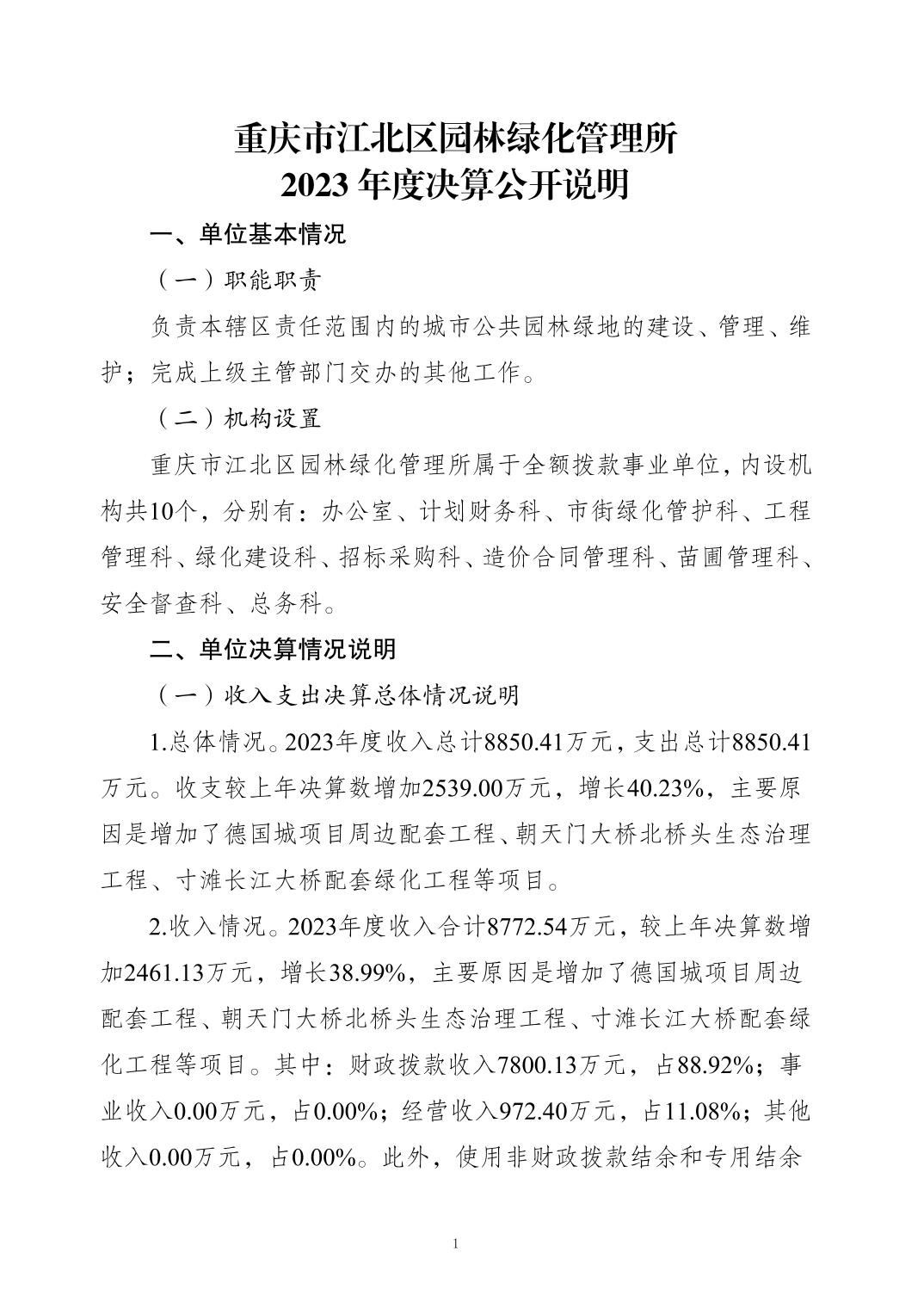 重慶市江北區(qū)園林綠化管理所2023 年度決算公開說明