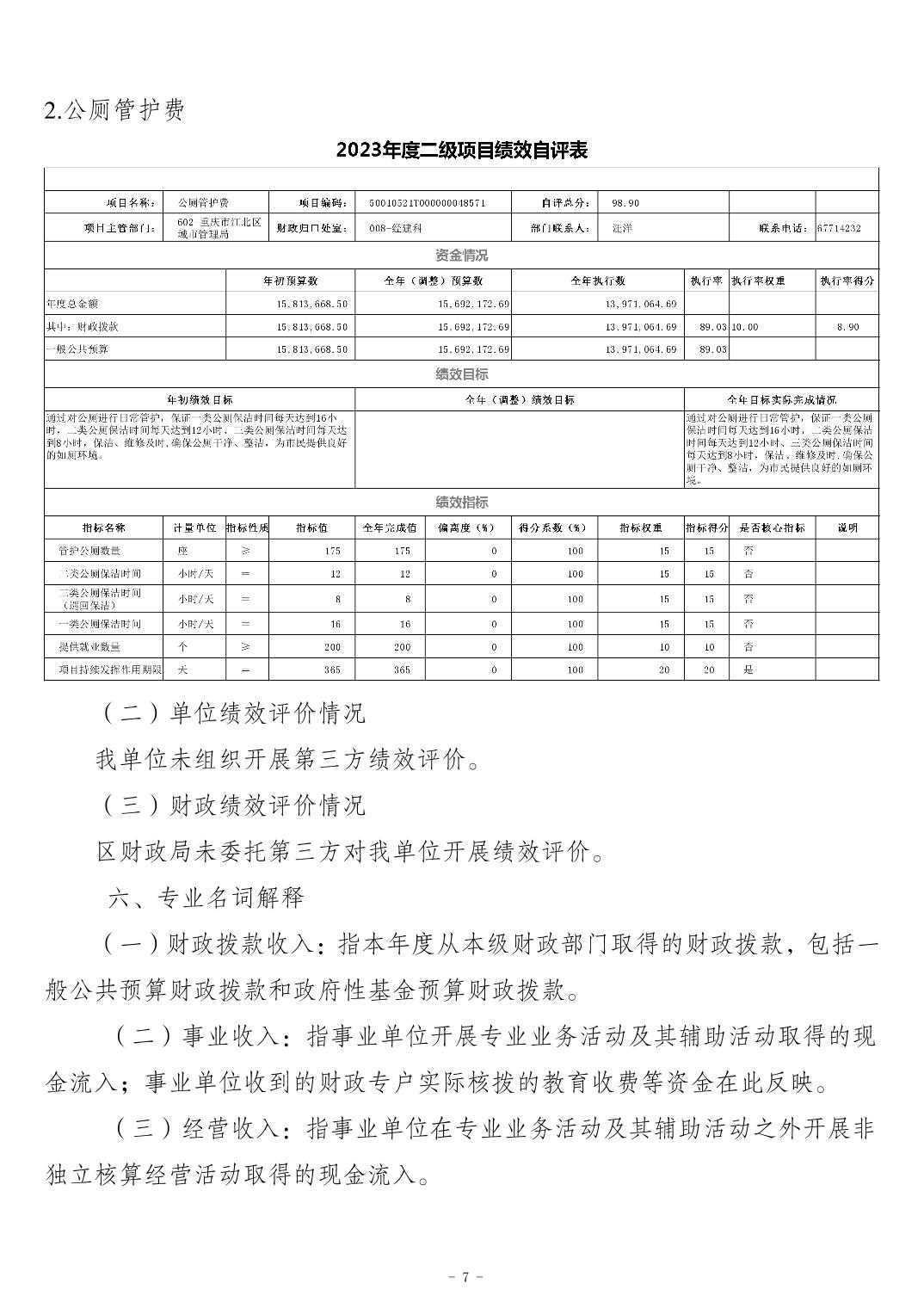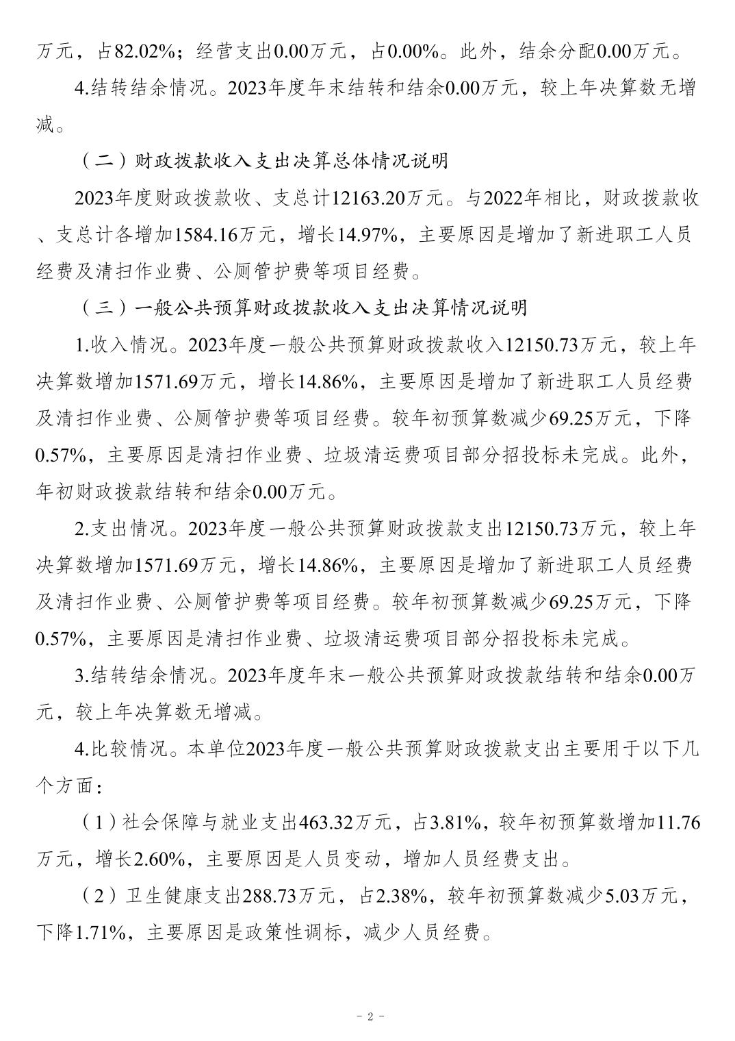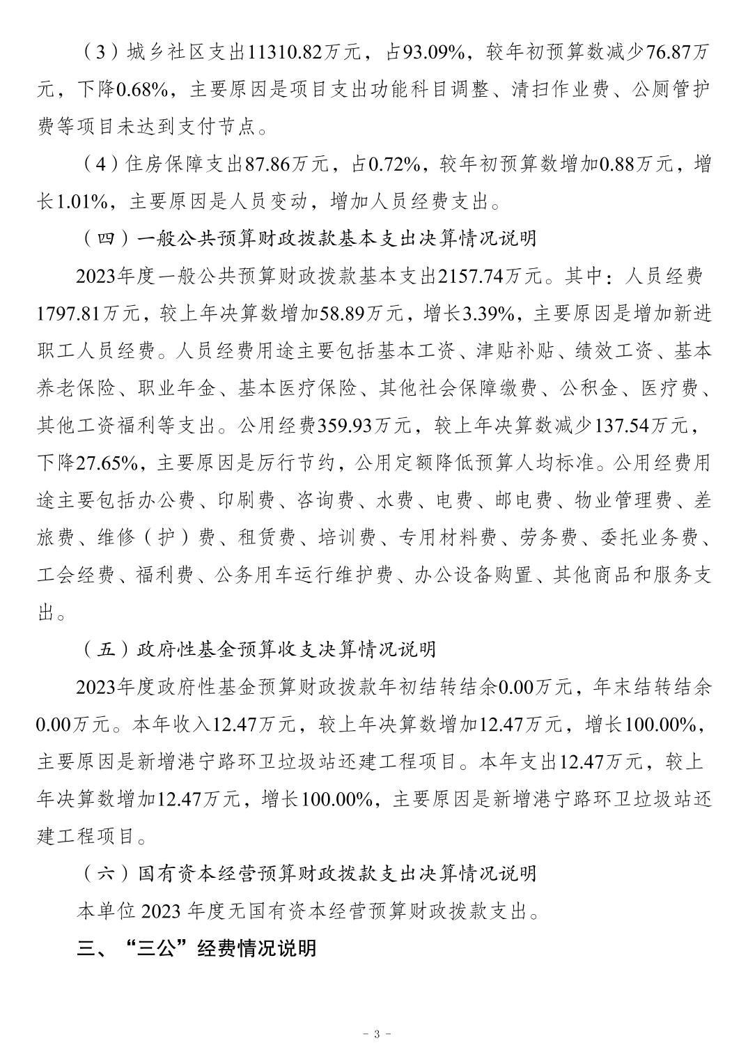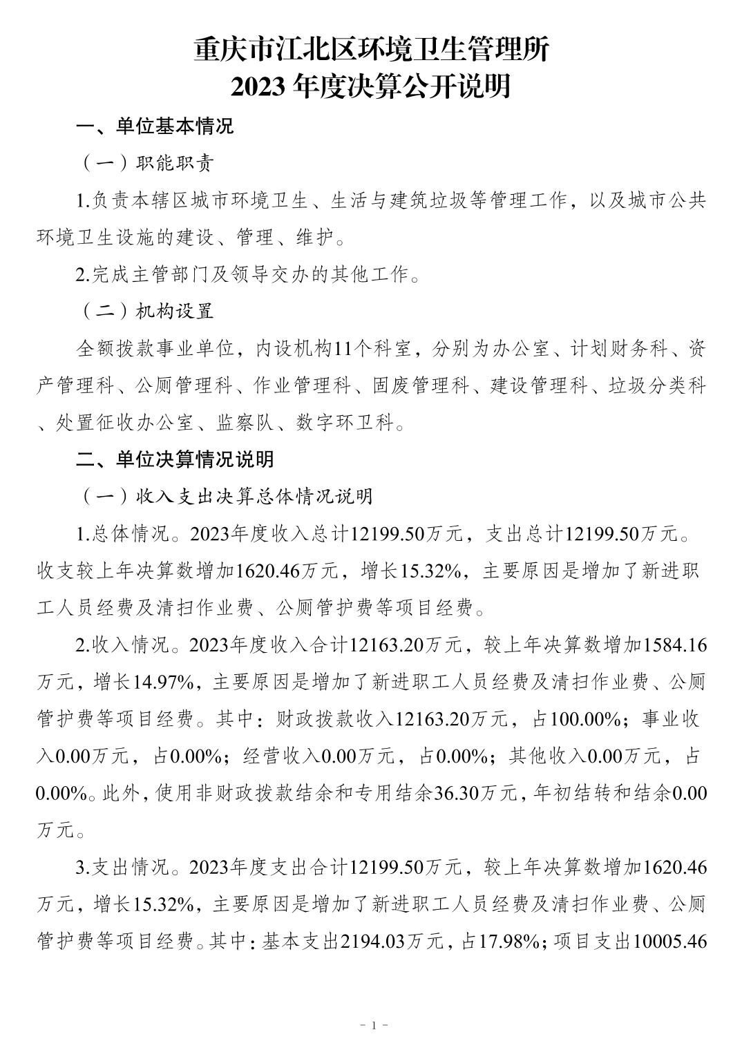 重慶市江北區環境衛生管理所2023 年度決算公開說明