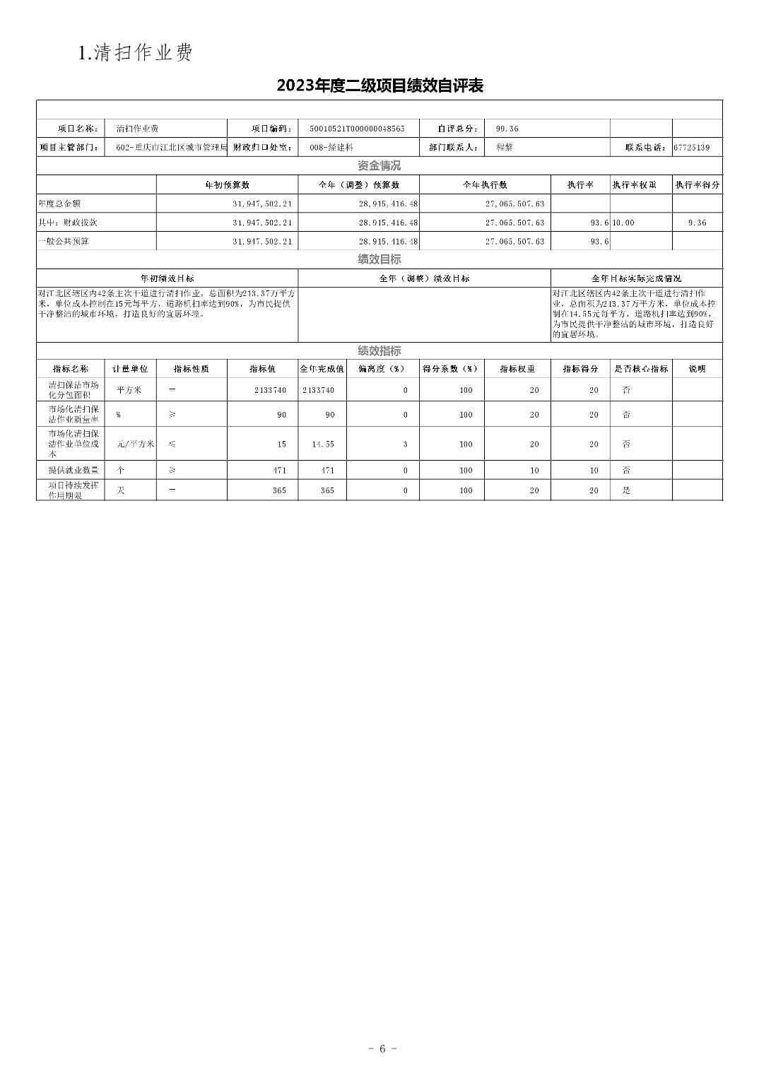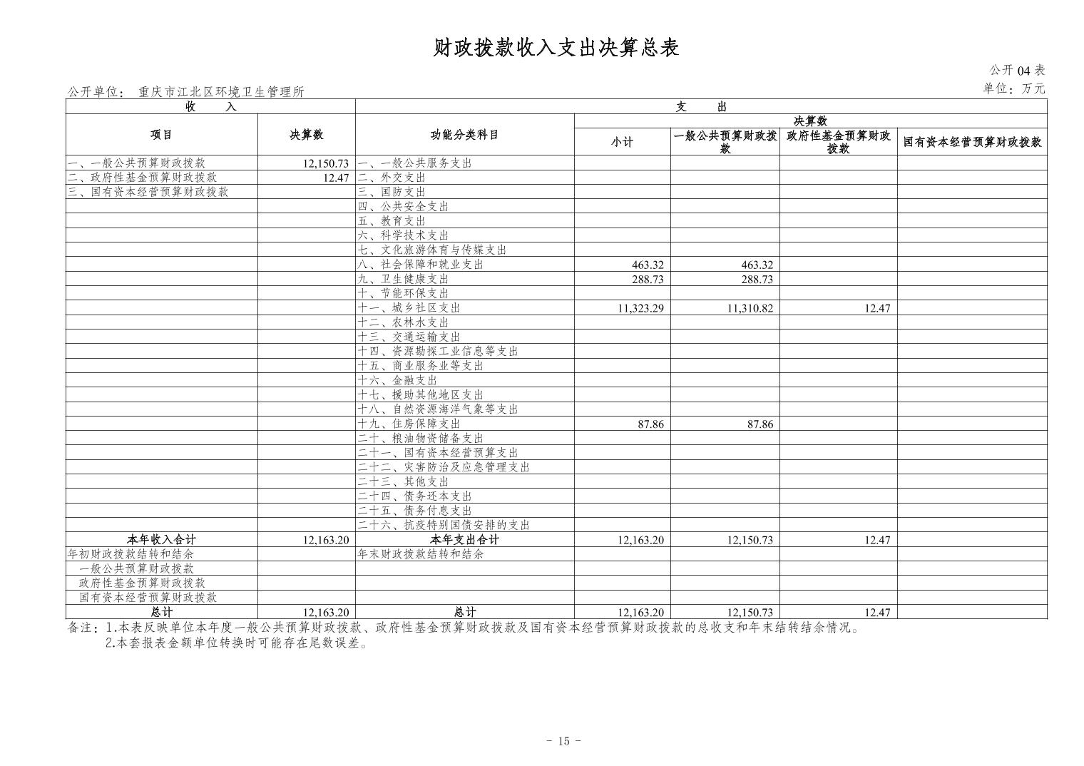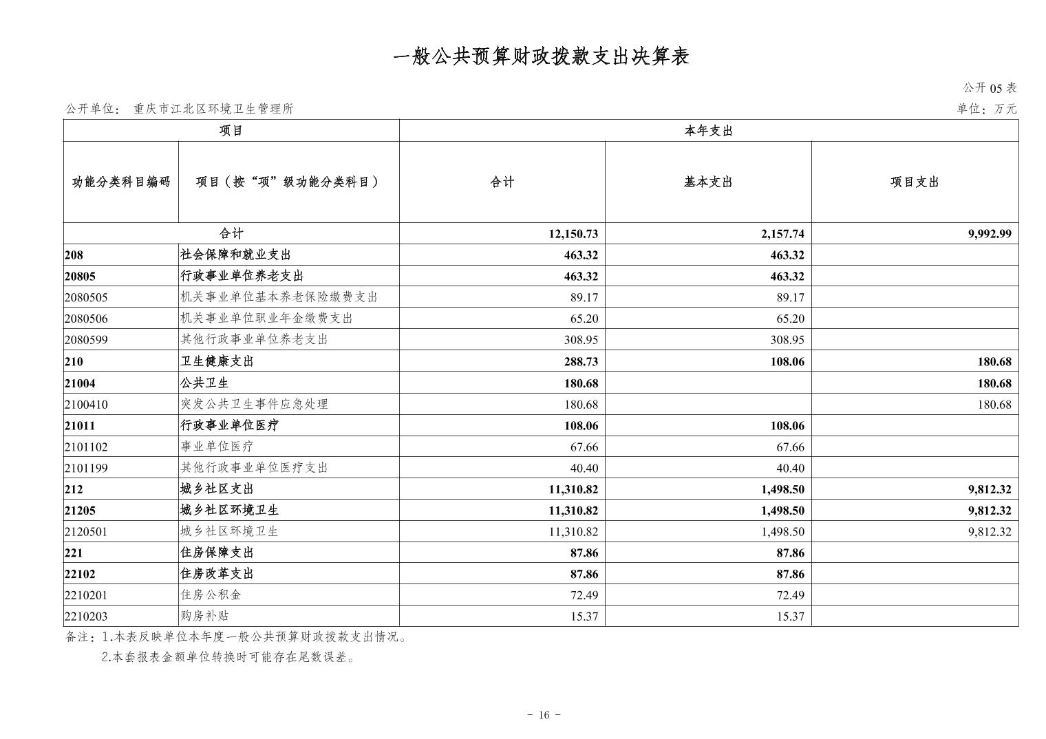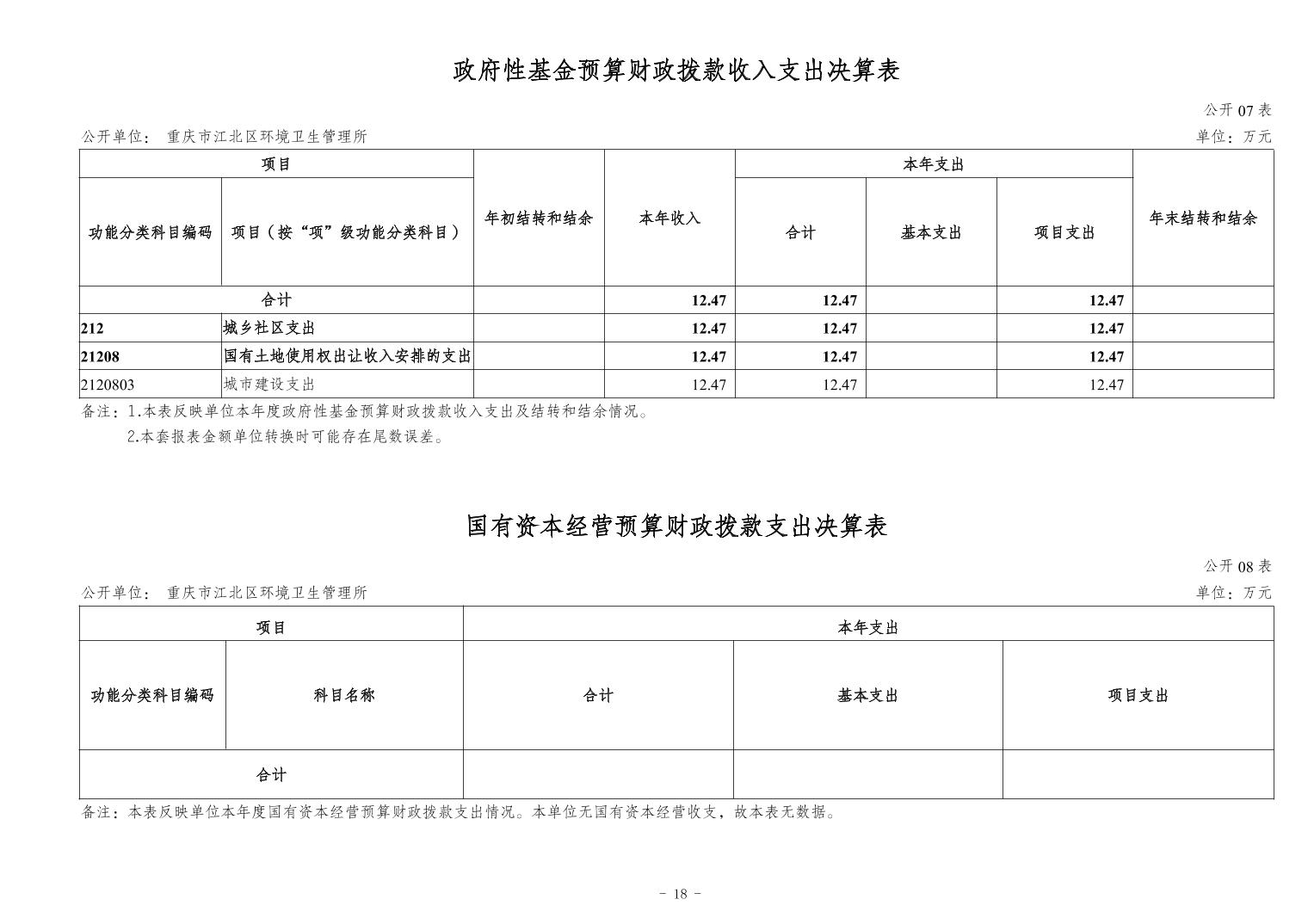 重慶市江北區環境衛生管理所2023 年度決算公開說明