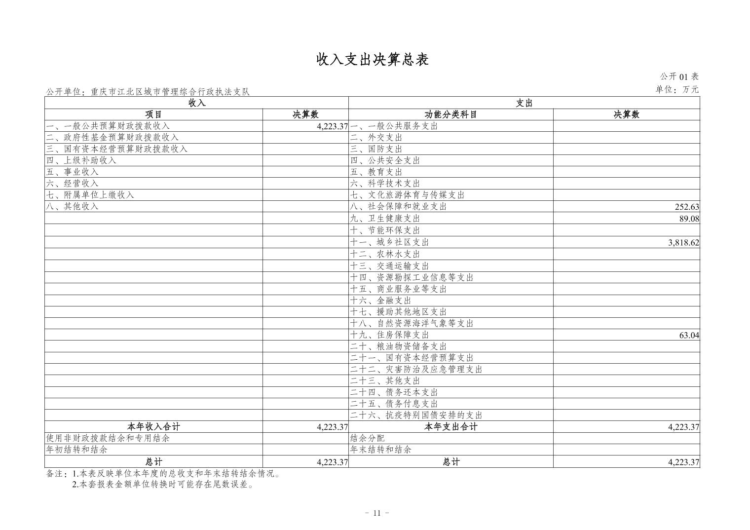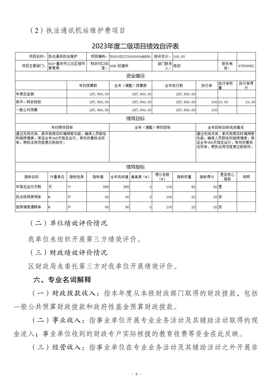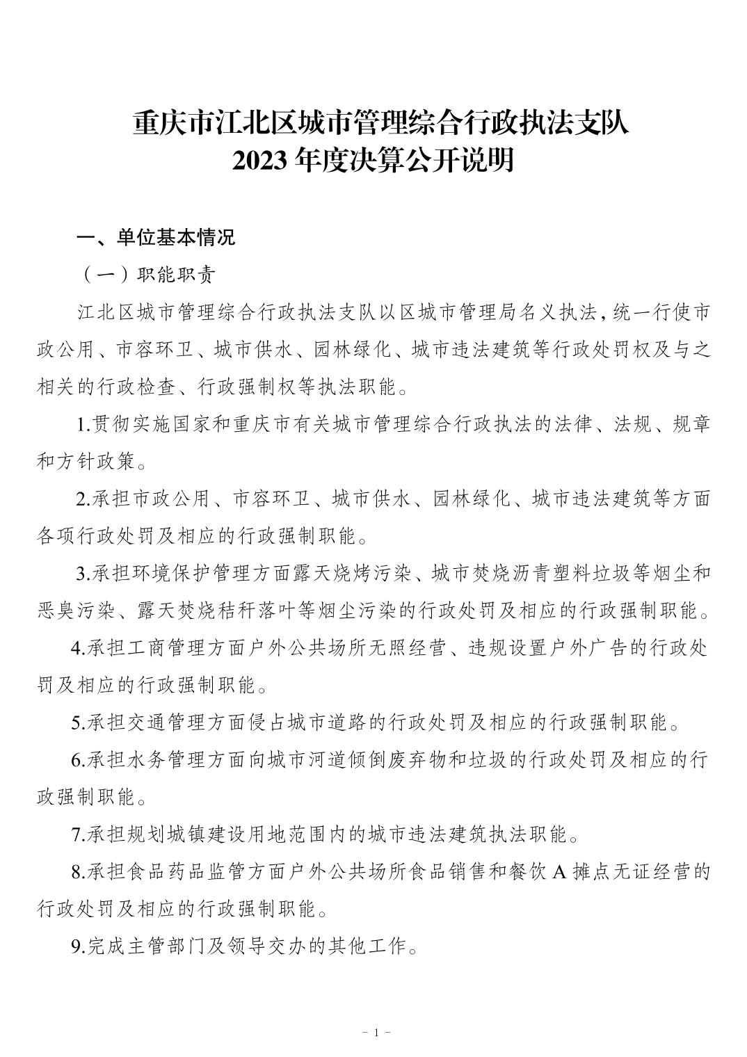 重慶市江北區城市管理綜合行政執法支隊2023 年度決算公開說明
