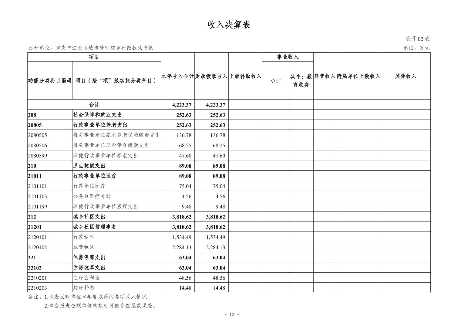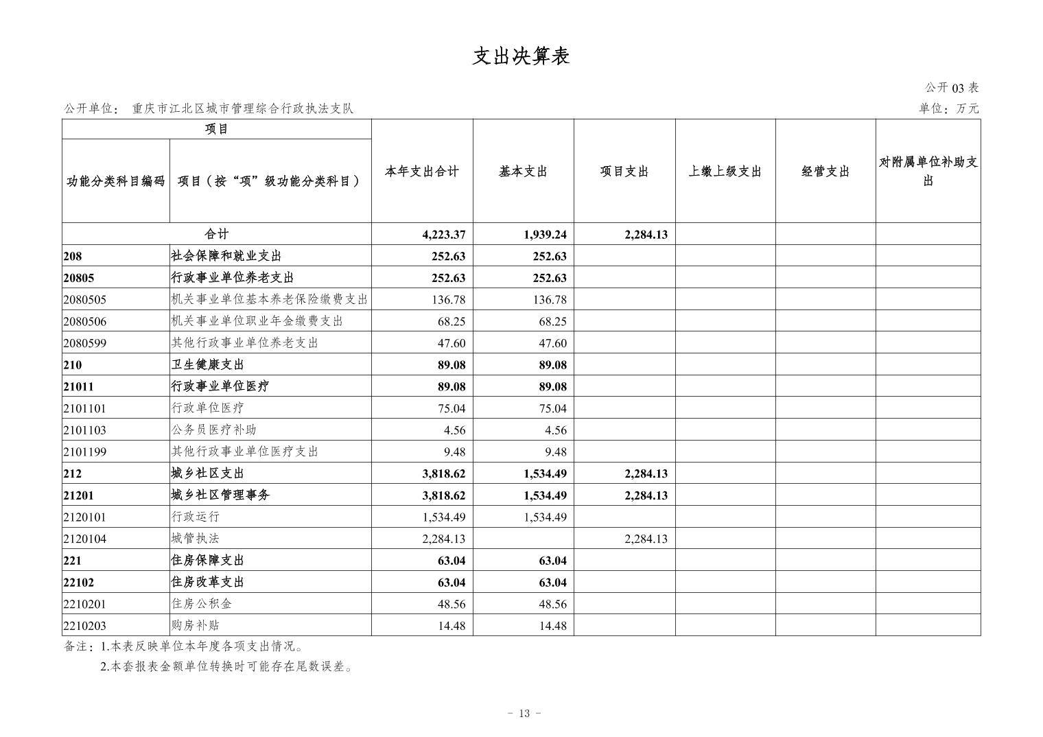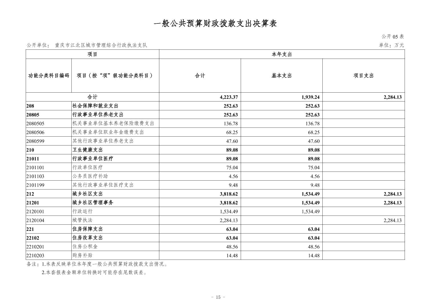 重慶市江北區城市管理綜合行政執法支隊2023 年度決算公開說明