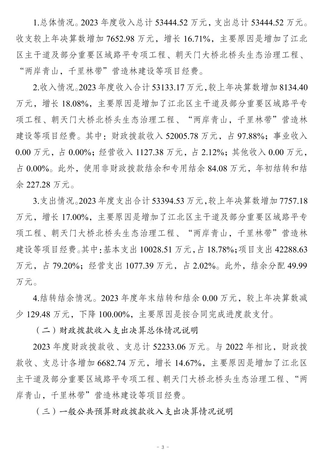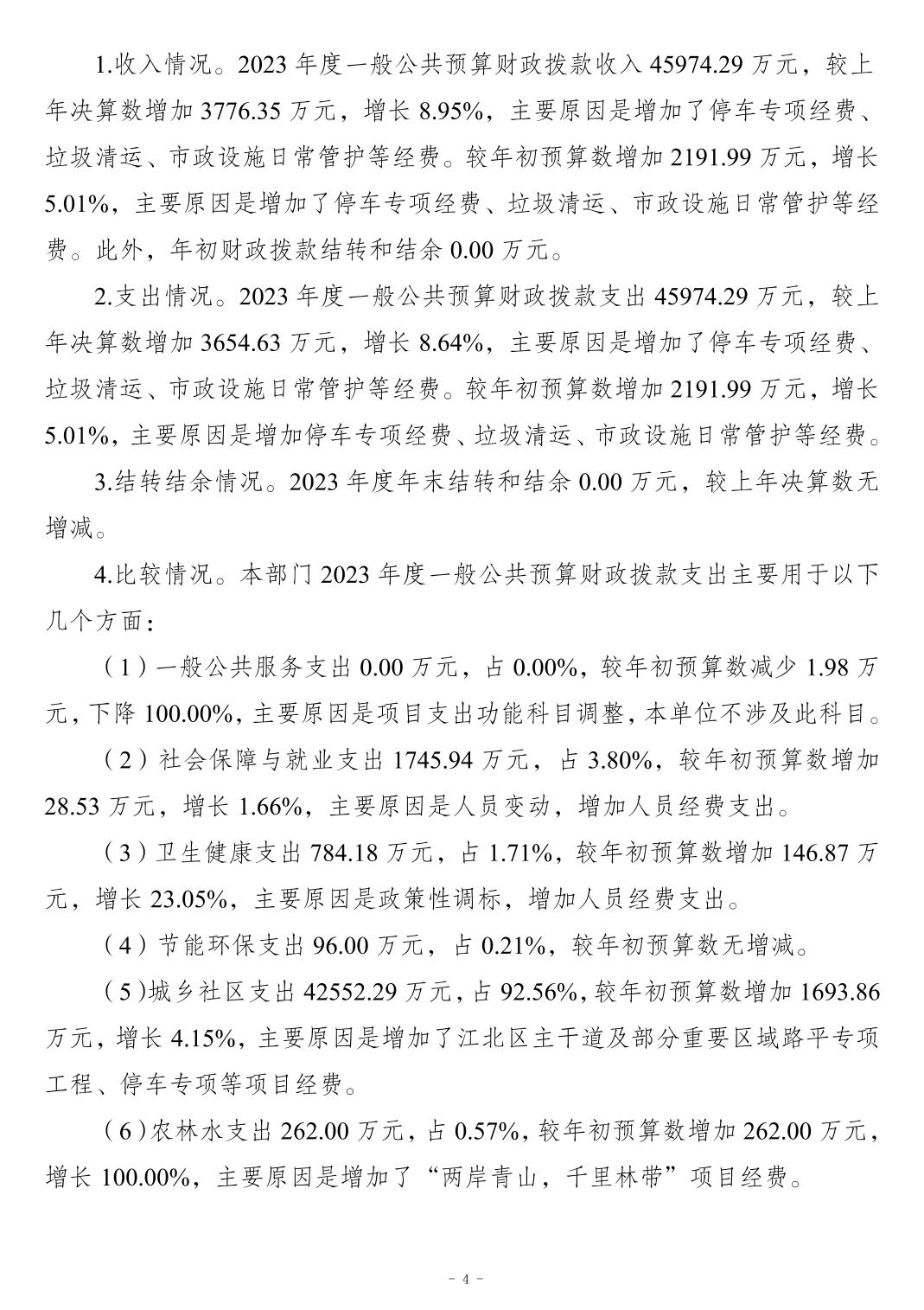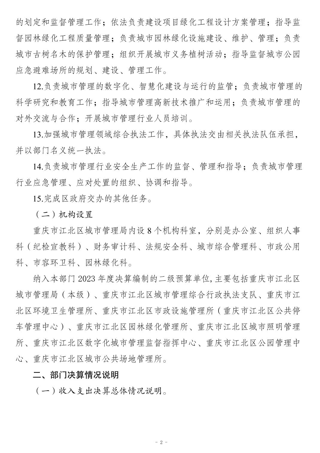 重慶市江北區城市管理局2023 年度系統決算公開說明