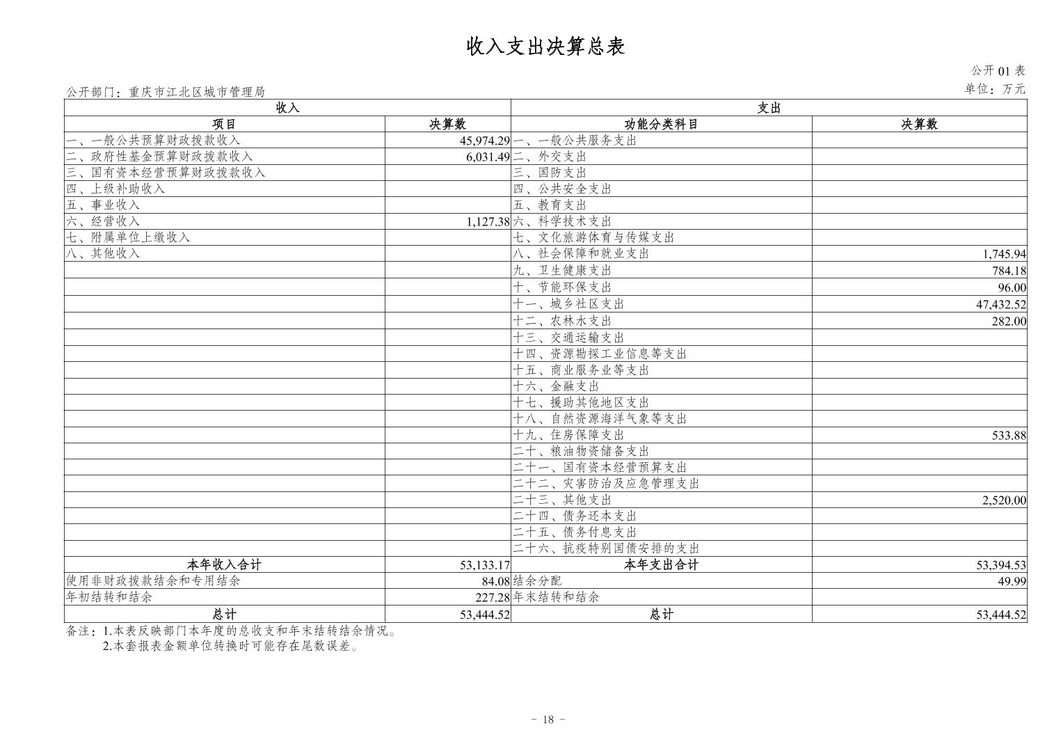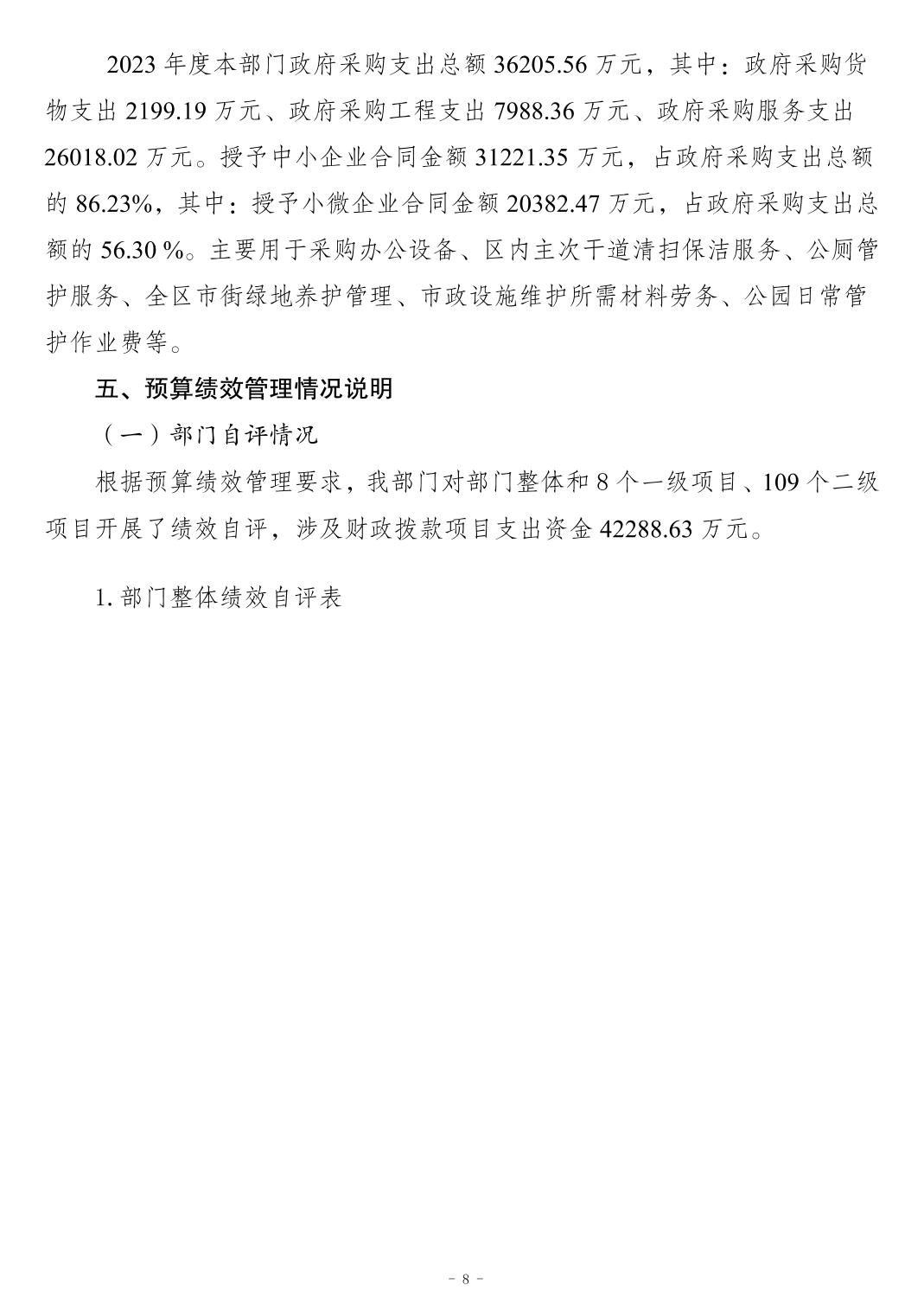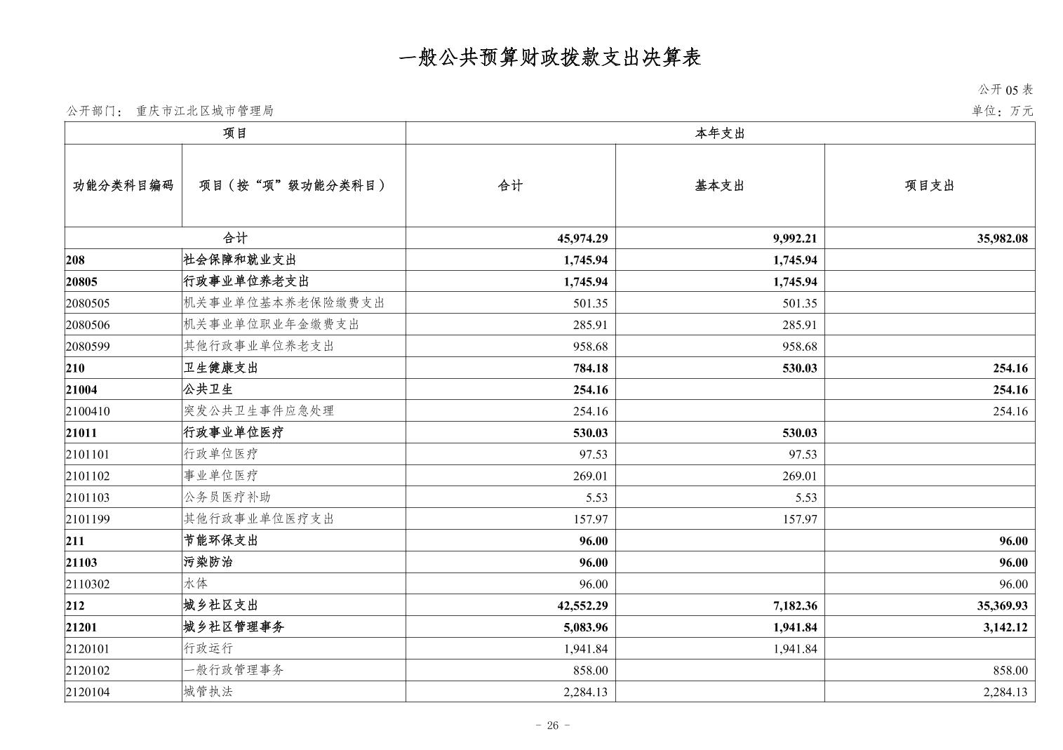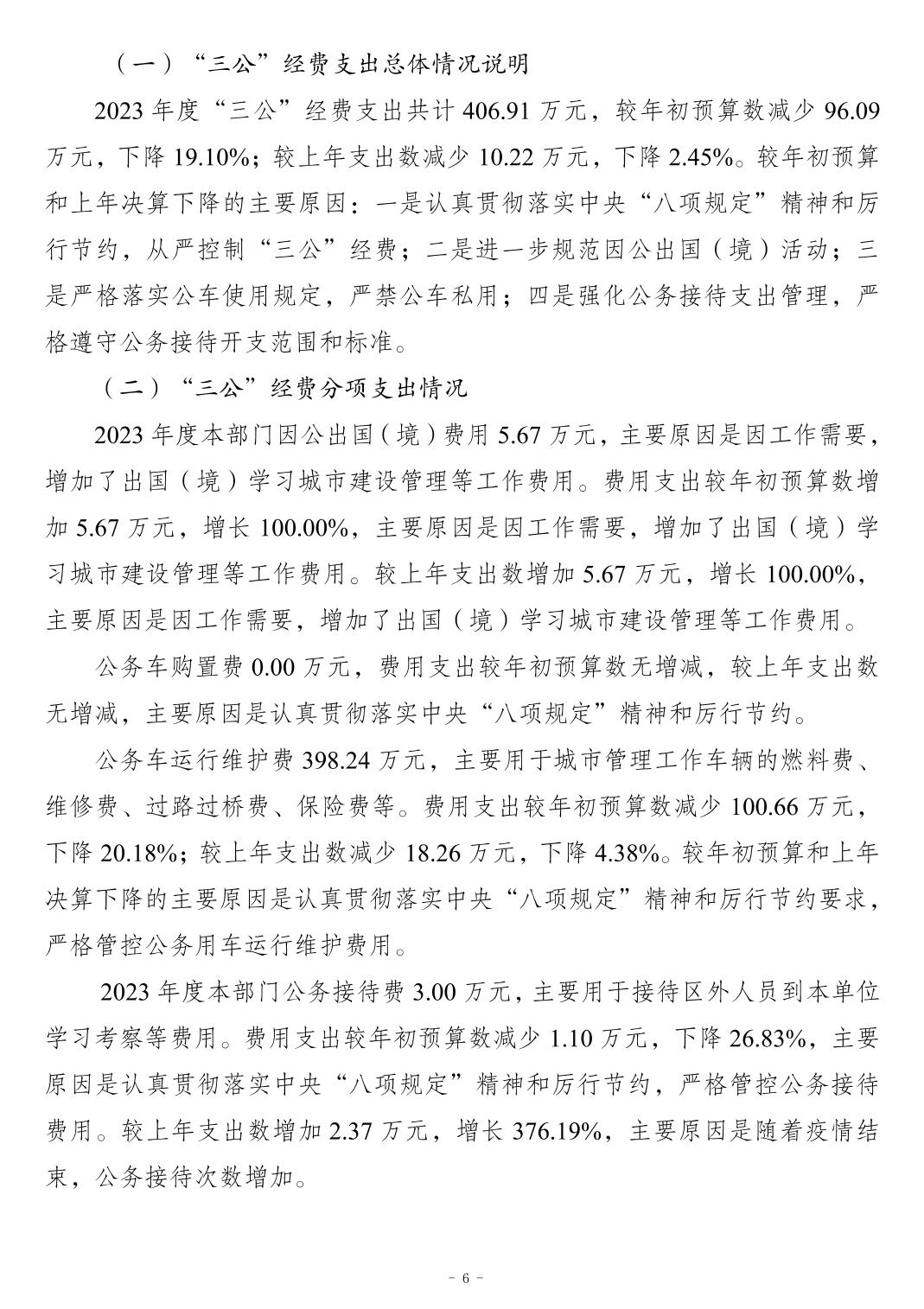 重慶市江北區城市管理局2023 年度系統決算公開說明