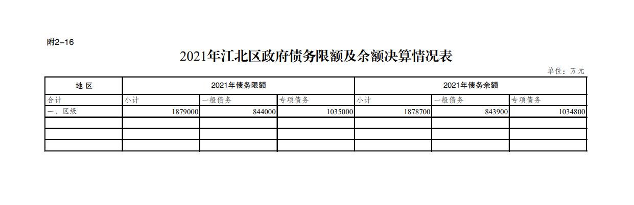 重慶市江北區人民政府關于江北區2021年決算的報告(2021年政府債務限額及余額決算情況)