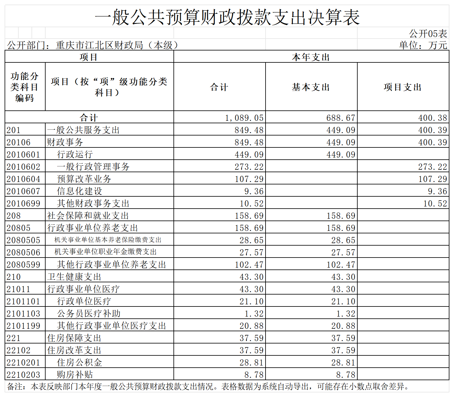 重慶市江北區財政局(本級)2022年度部門決算情況說明