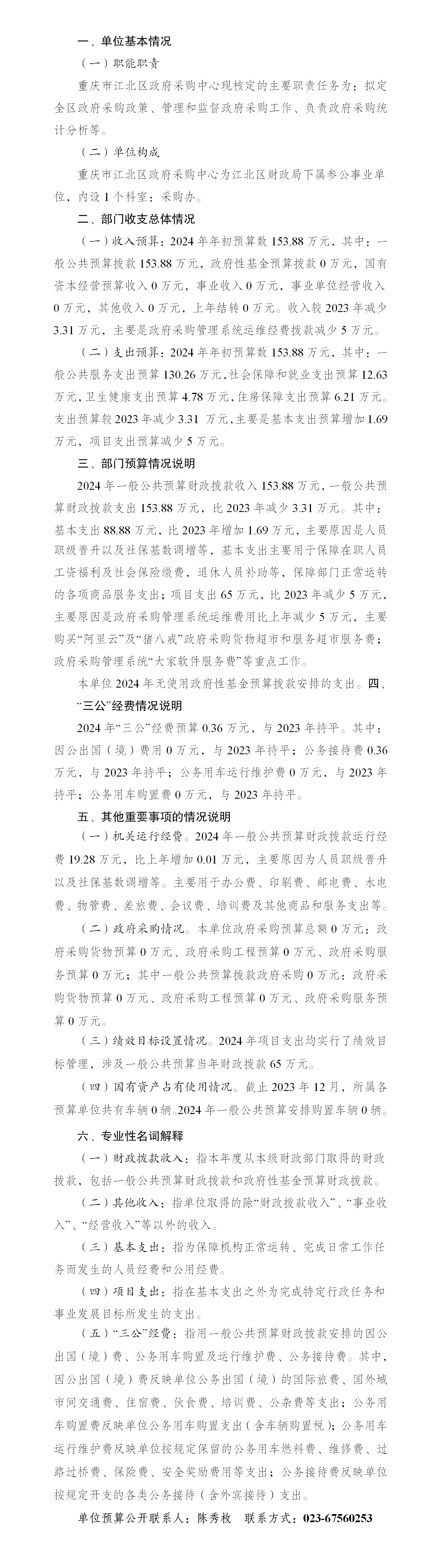 重慶市江北區(qū)政府采購(gòu)中心2024年部門(mén)預(yù)算情況說(shuō)明