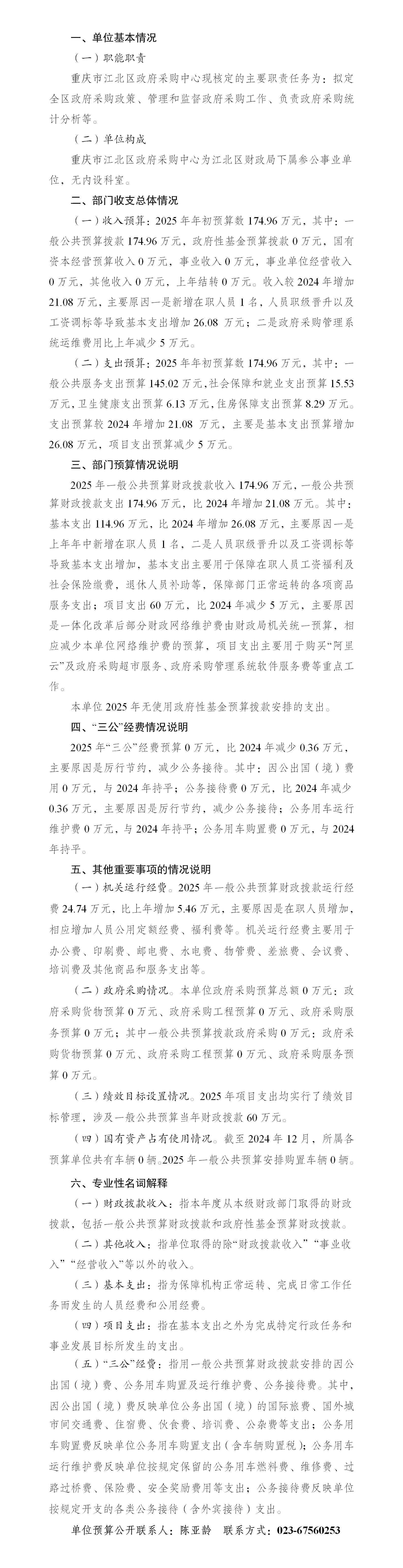 重慶市江北區政府采購中心2025年單位預算情況說明