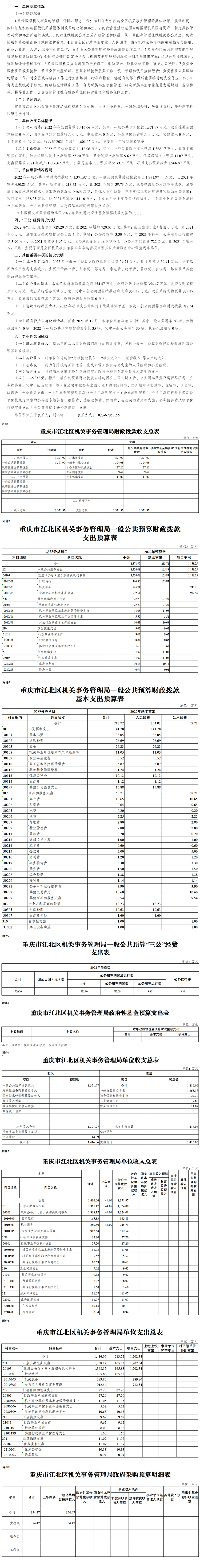 重慶市江北區機關事務管理局2022年單位預算情況說明