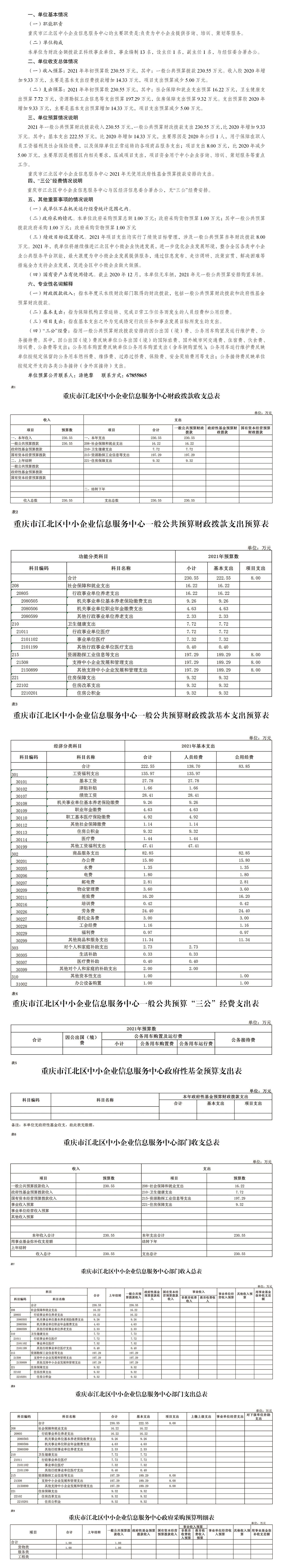 重慶市江北區中小企業信息服務中心2021年部門預算情況說明