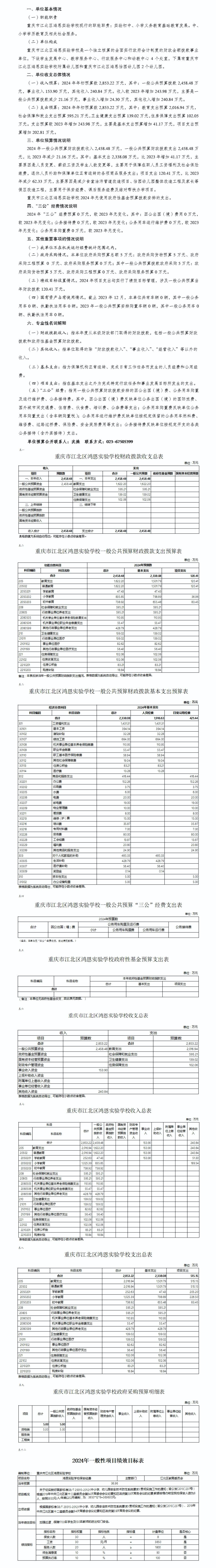 重慶市江北區鴻恩實驗學校2024年單位預算情況說明
