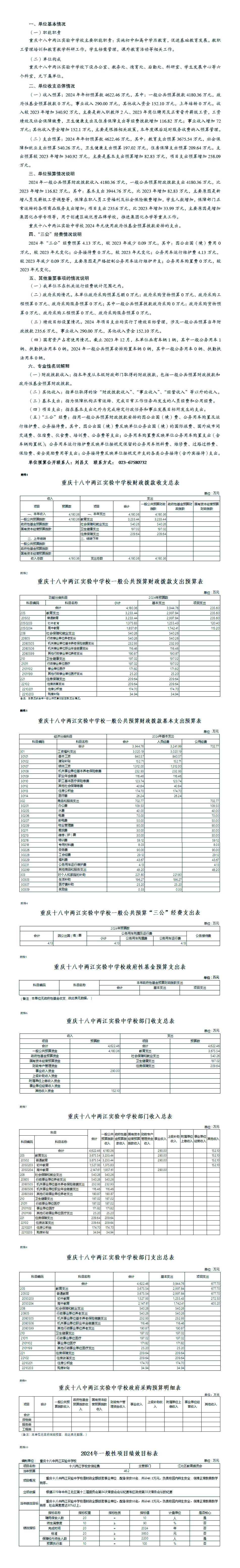 重慶十八中兩江實驗中學校2024部門預算情況說明
