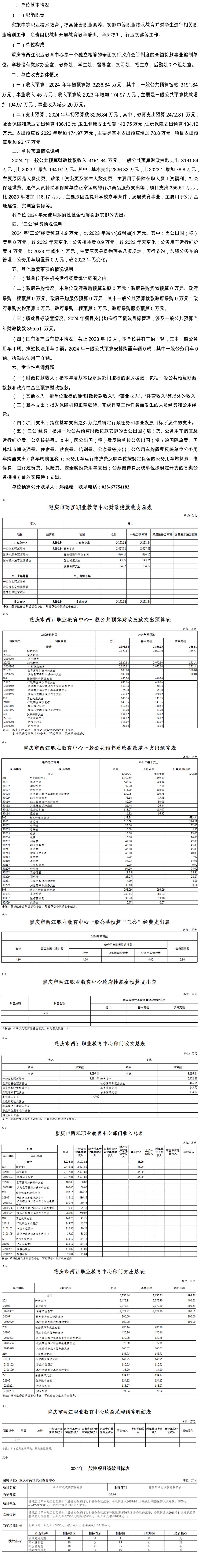 重慶市兩江職業教育中心2024年單位預算情況說明