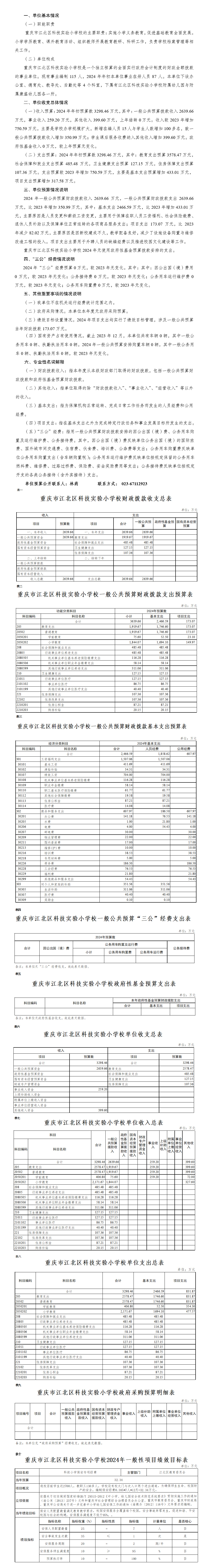 重慶市江北區科技實驗小學2024單位預算情況說明