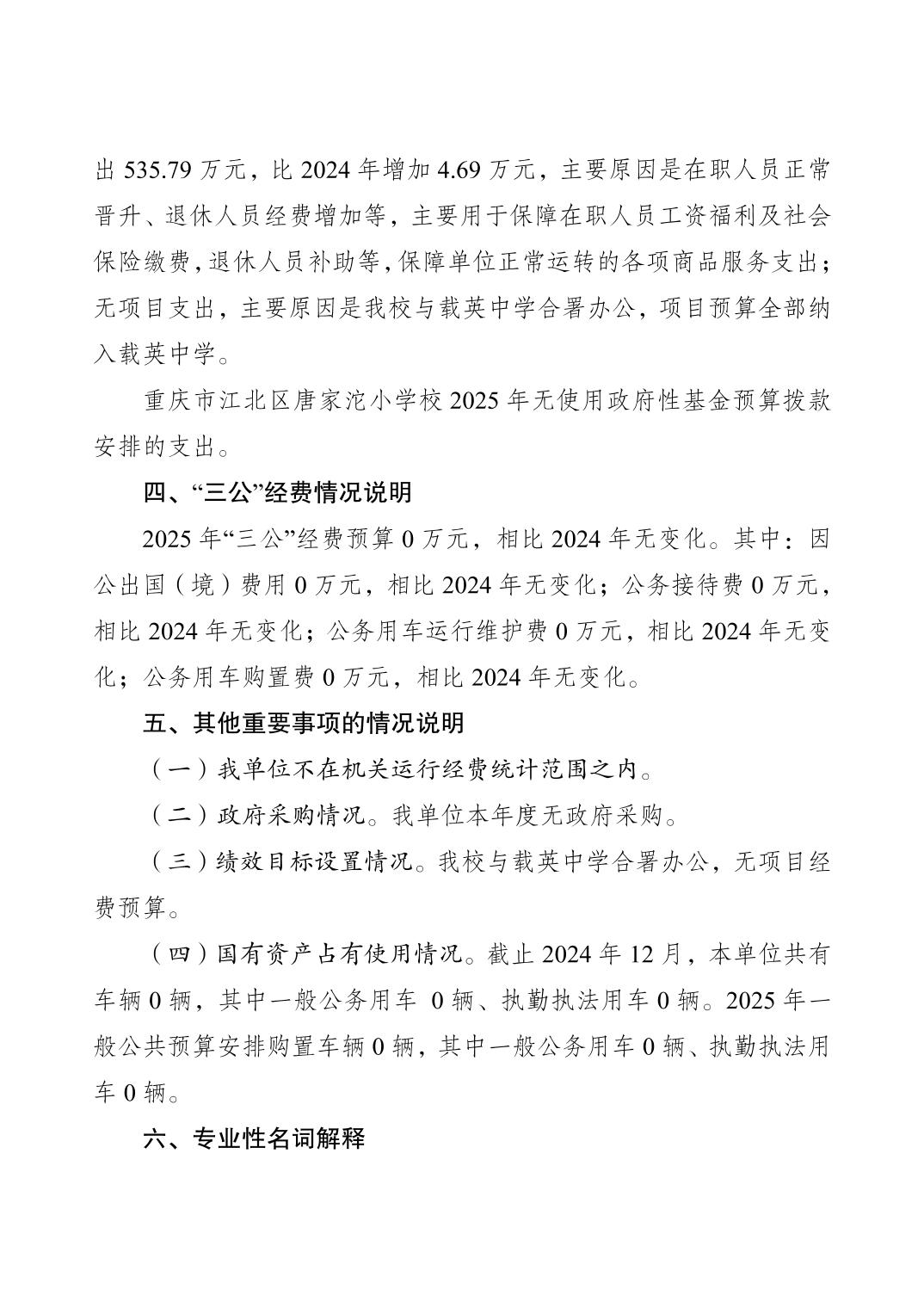 重慶市江北區唐家沱小學校2025年單位預算情況說明