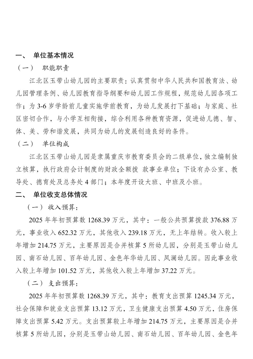 重慶市江北區(qū)玉帶山幼兒園2025年單位預(yù)算情況說(shuō)明