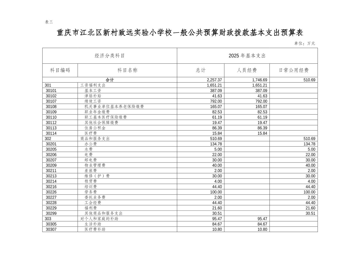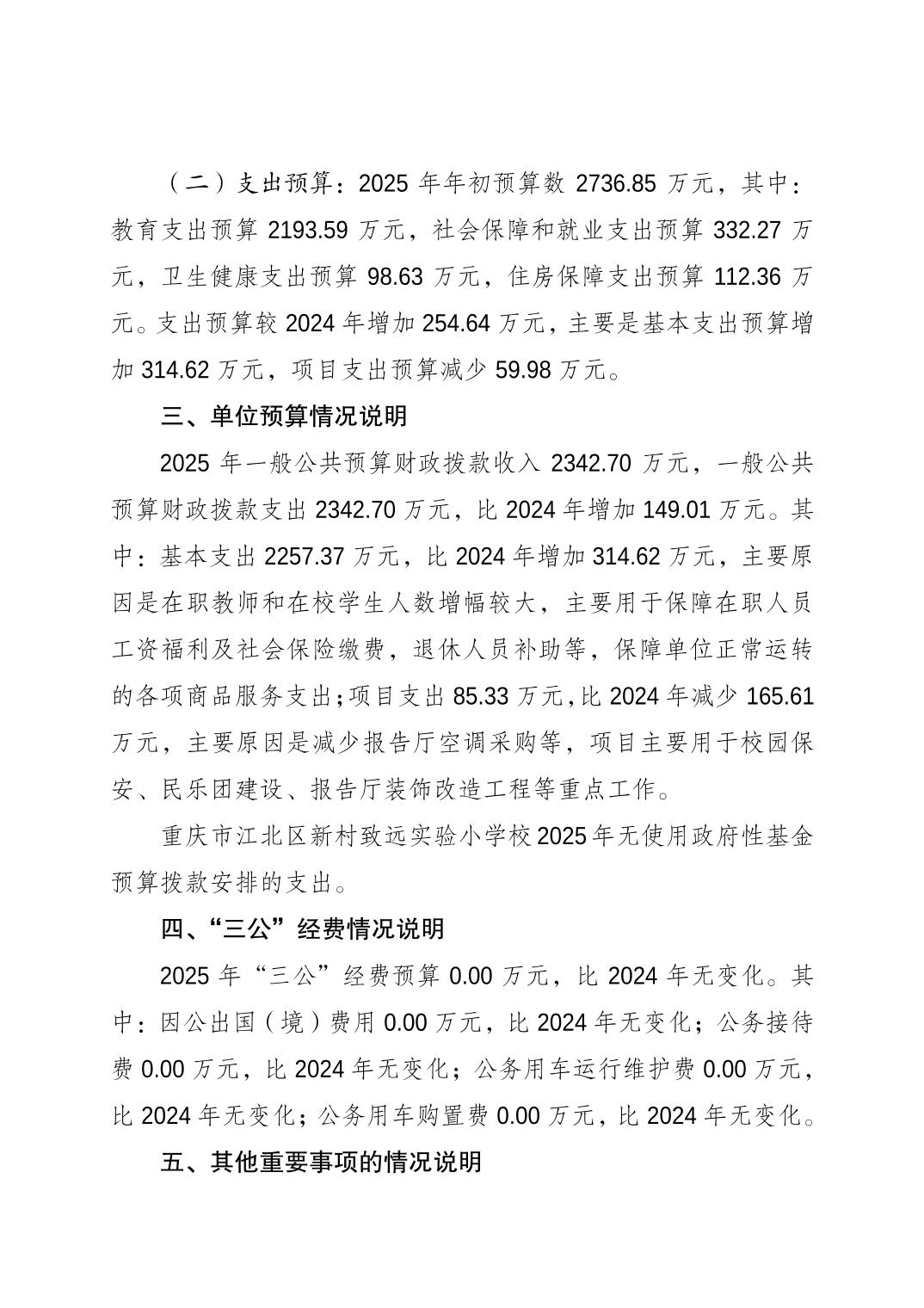 重慶市江北區新村致遠實驗小學校2025年單位預算情況說明
