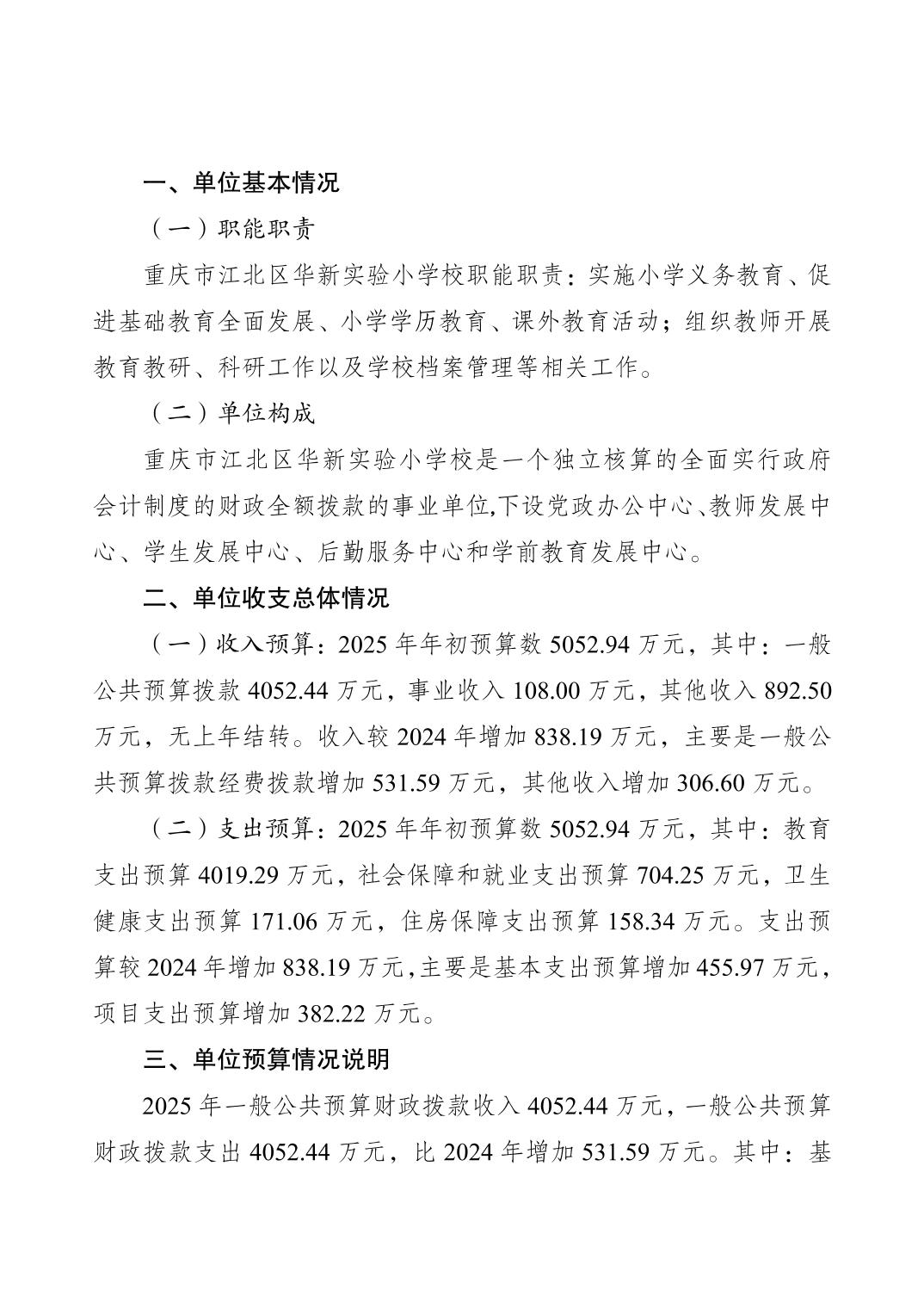 重慶市江北區華新實驗小學校2025年單位預算情況說明