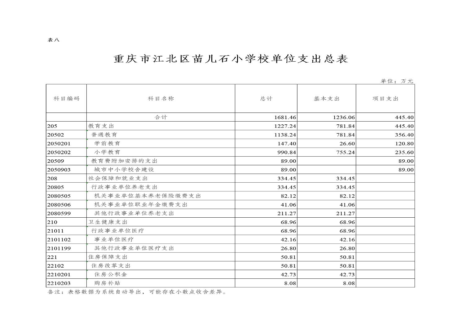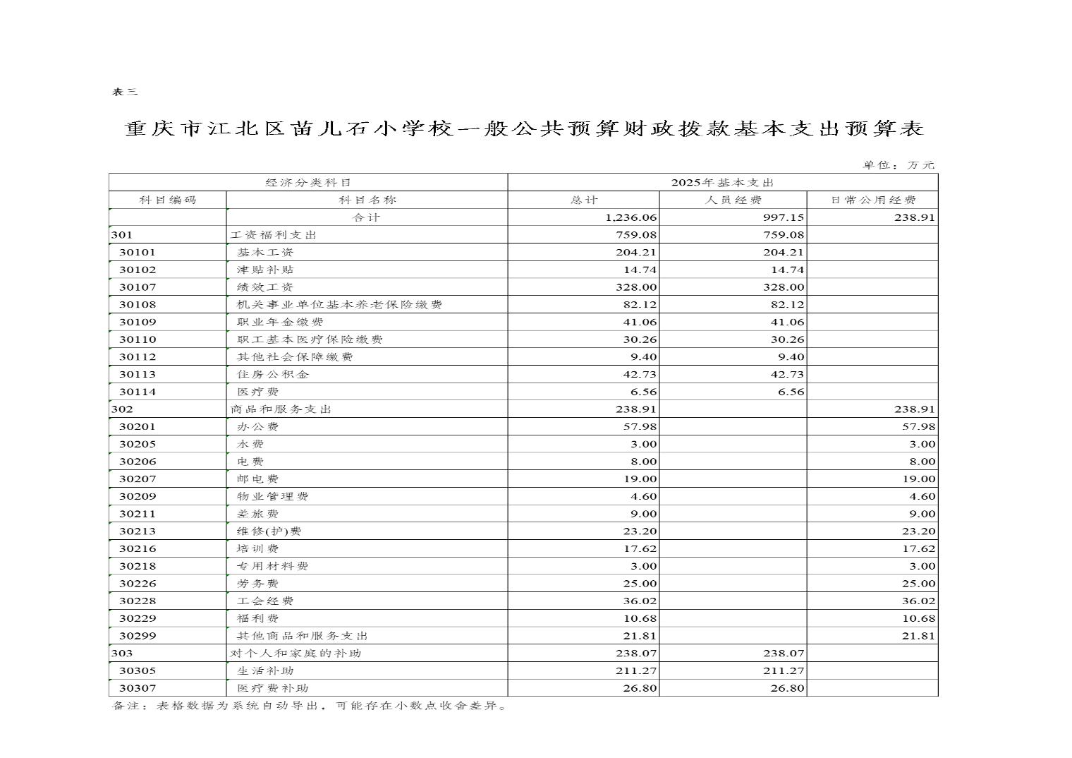 重慶市江北區苗兒石小學校2025年單位預算情況說明