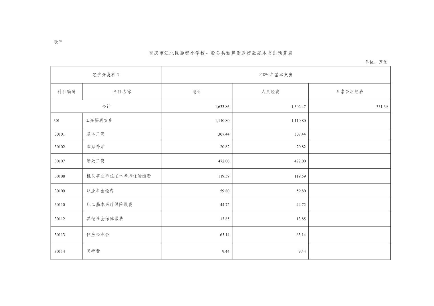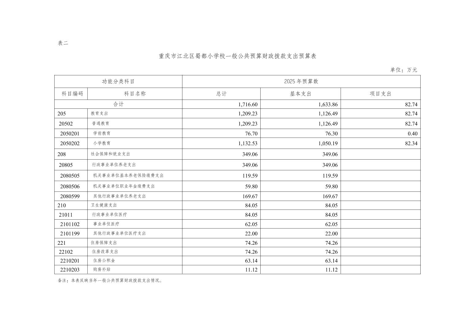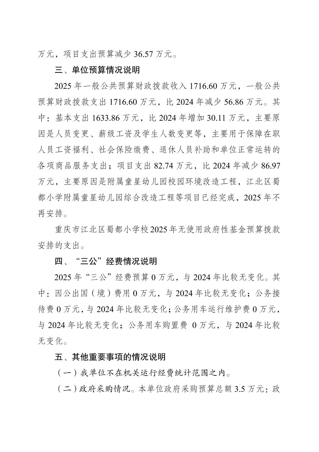 重慶市江北區蜀都小學校2025年單位預算情況說明