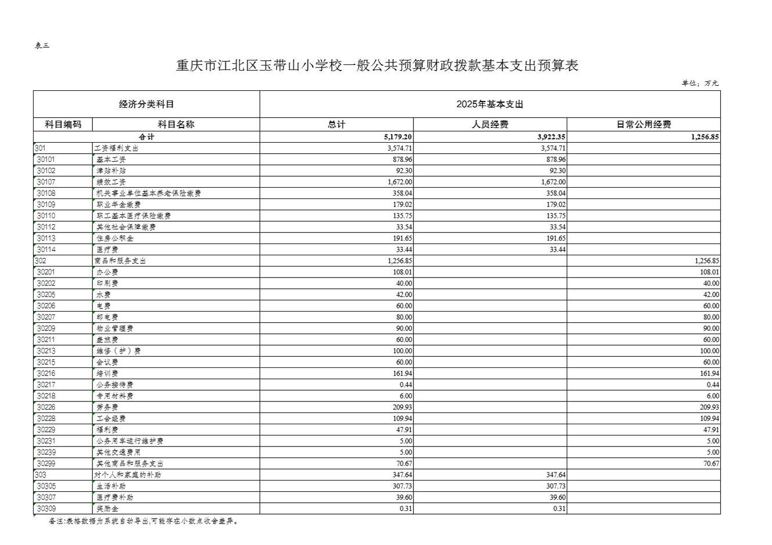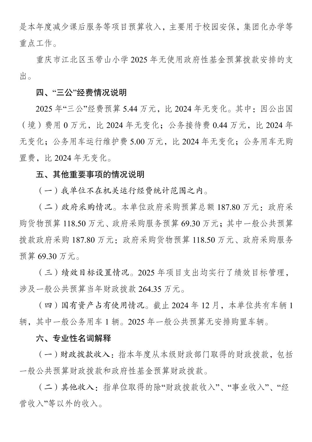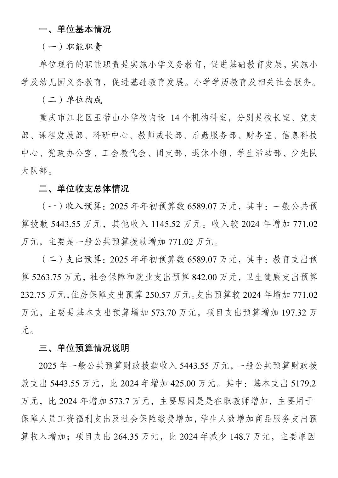 重慶市江北區(qū)玉帶山小學(xué)校2025年單位預(yù)算情況說明