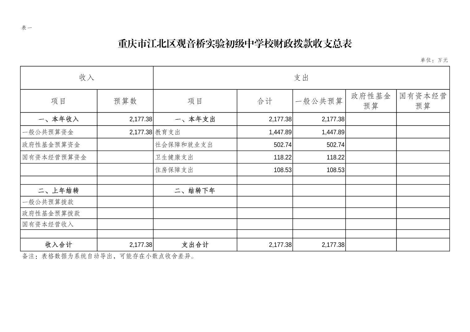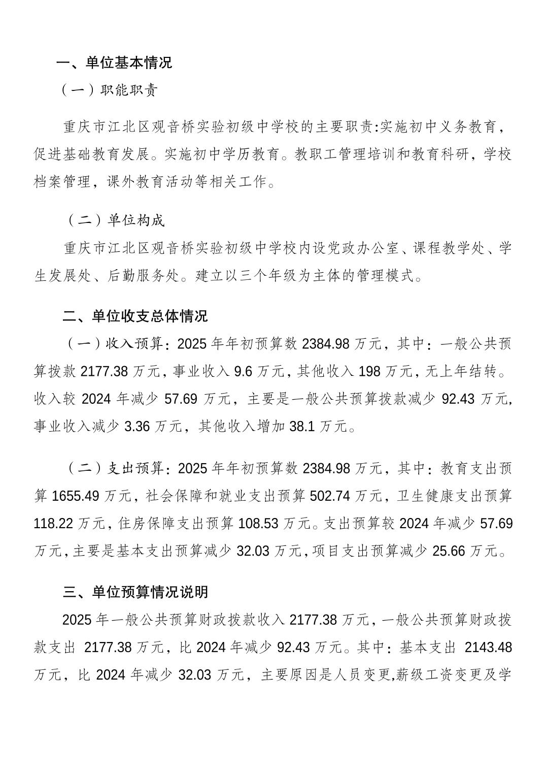 重慶市江北區觀音橋實驗初級中學校2025年單位預算情況說明