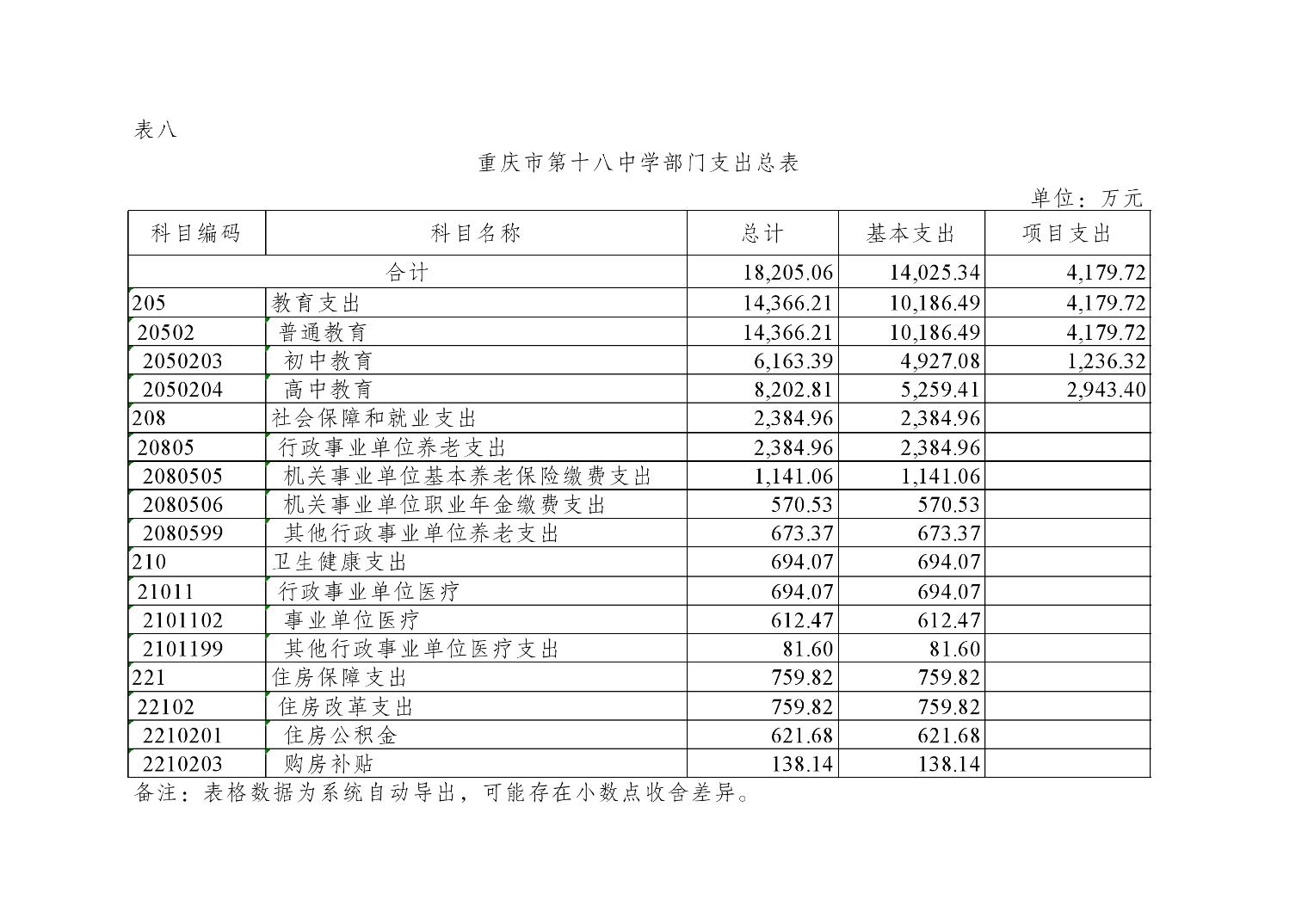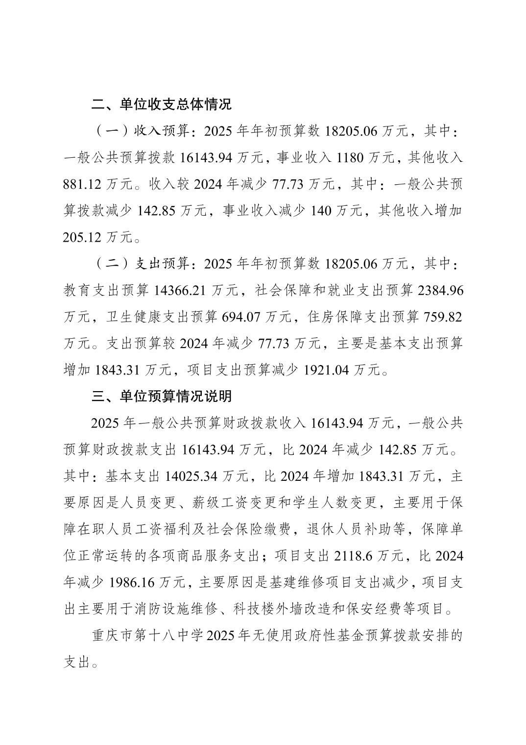 重慶市第十八中學(xué)2025年單位預(yù)算情況說明