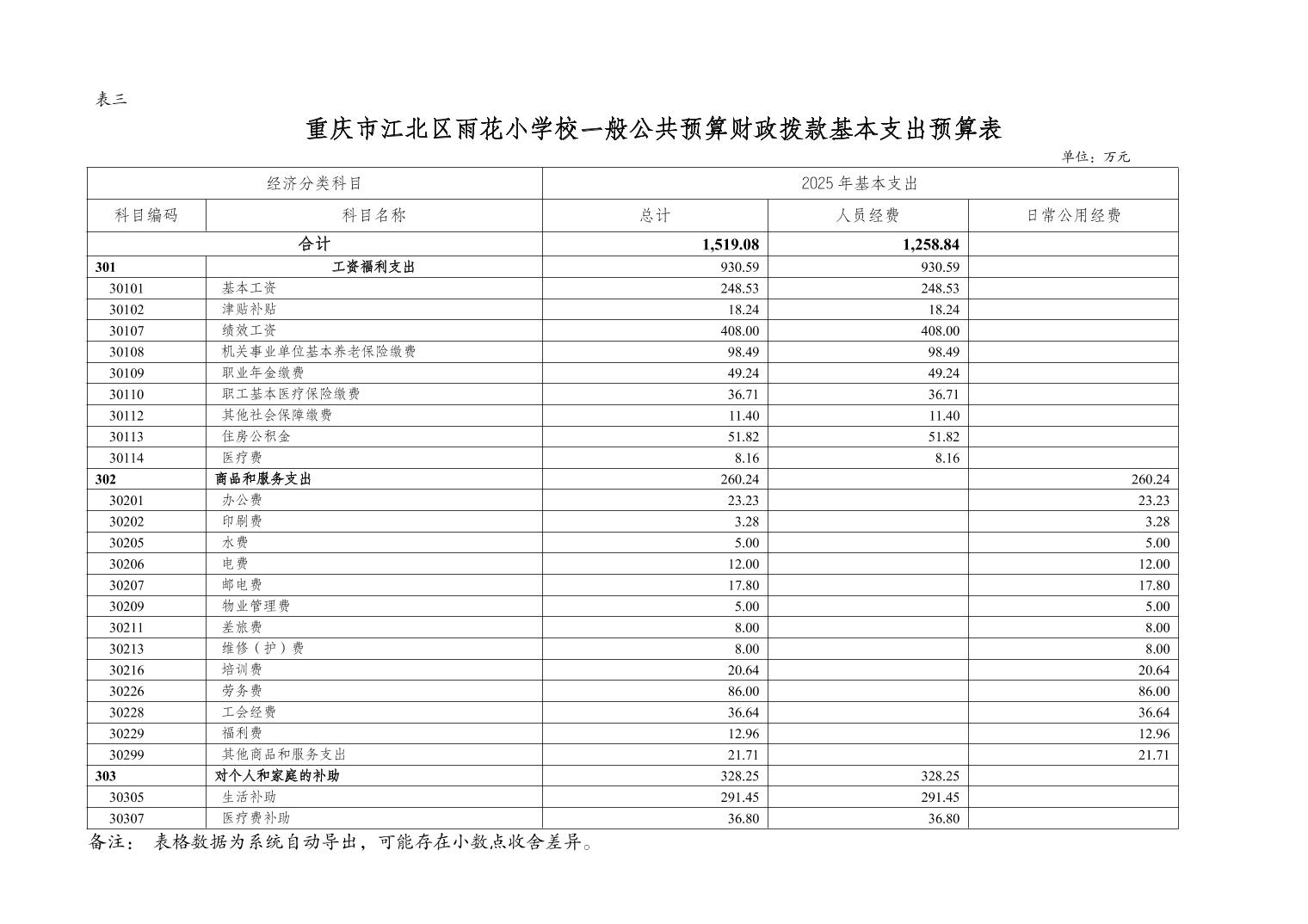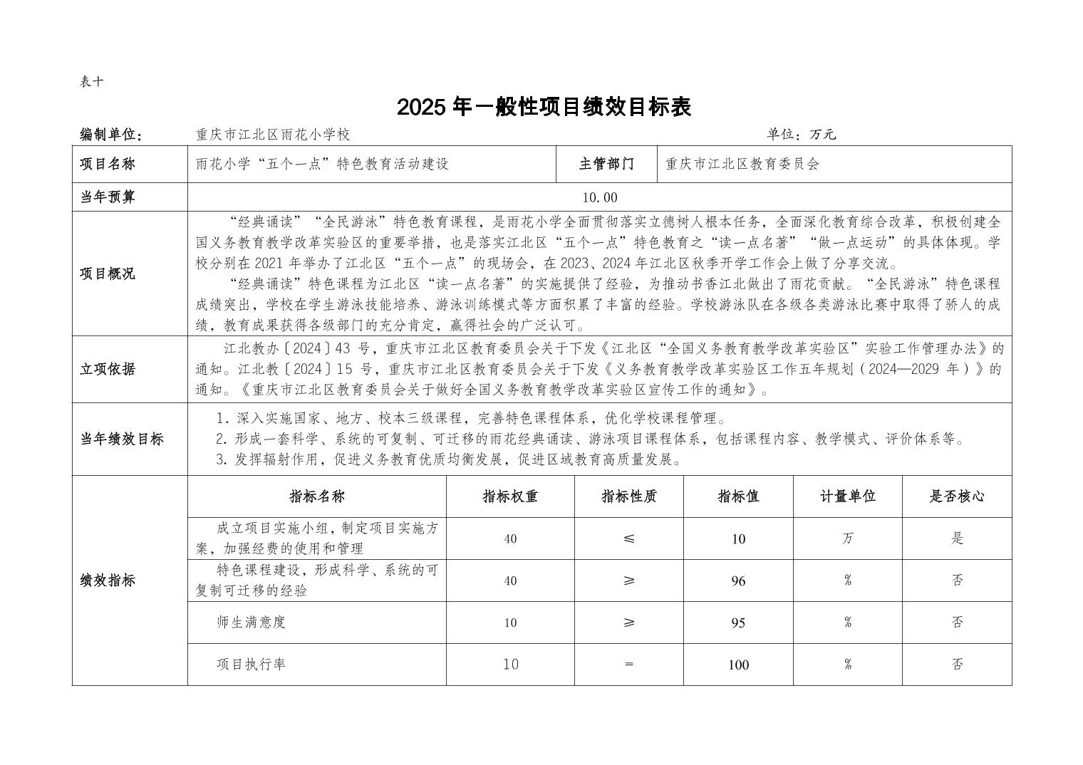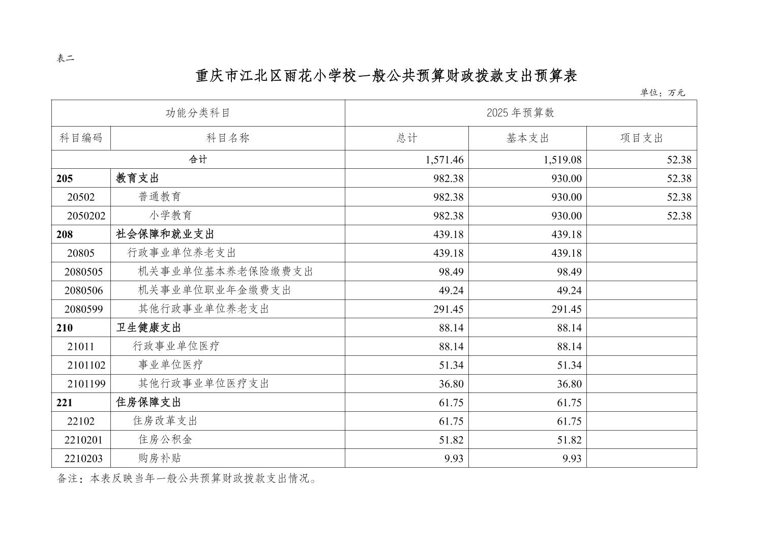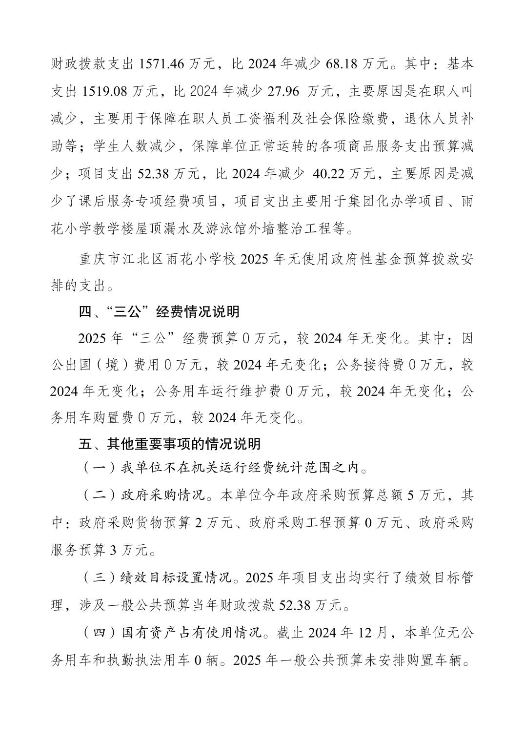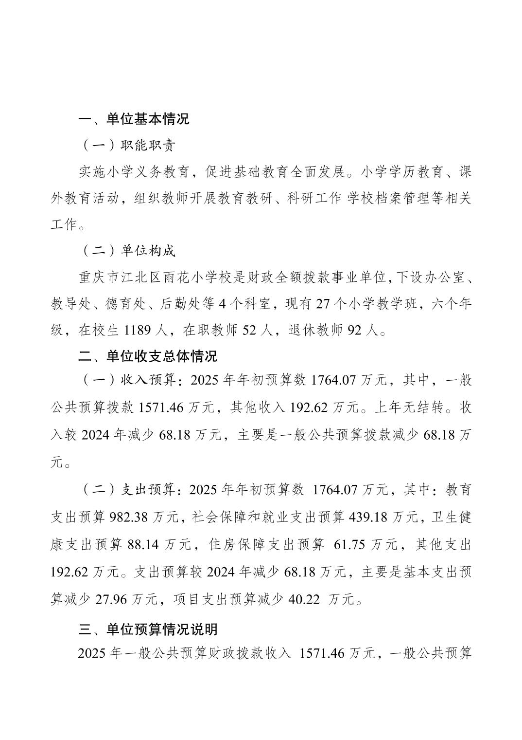 重慶市江北區雨花小學校2025年單位預算情況說明