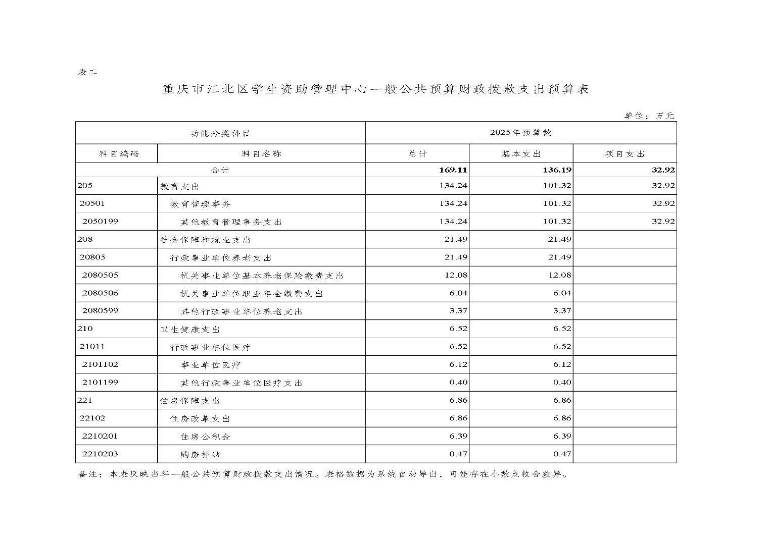 重慶市江北區學生資助管理中心2025年單位預算情況說明