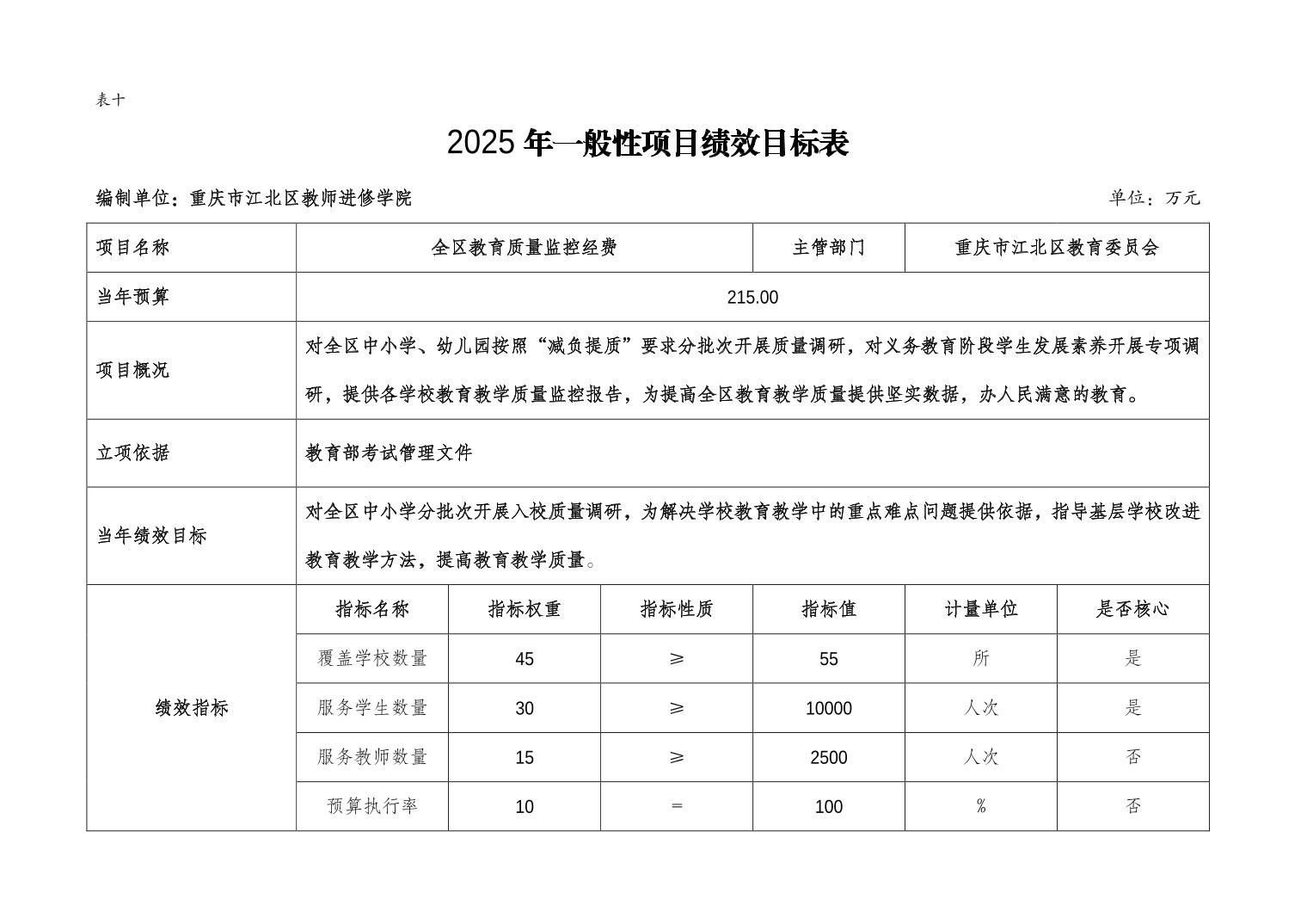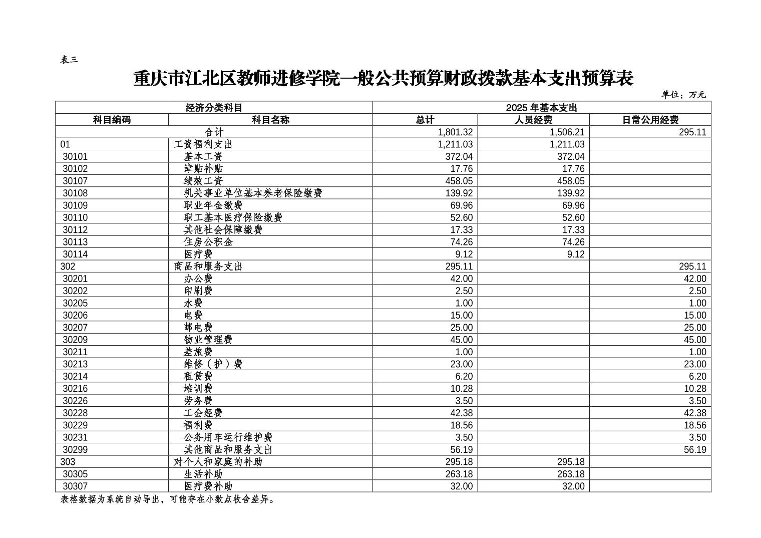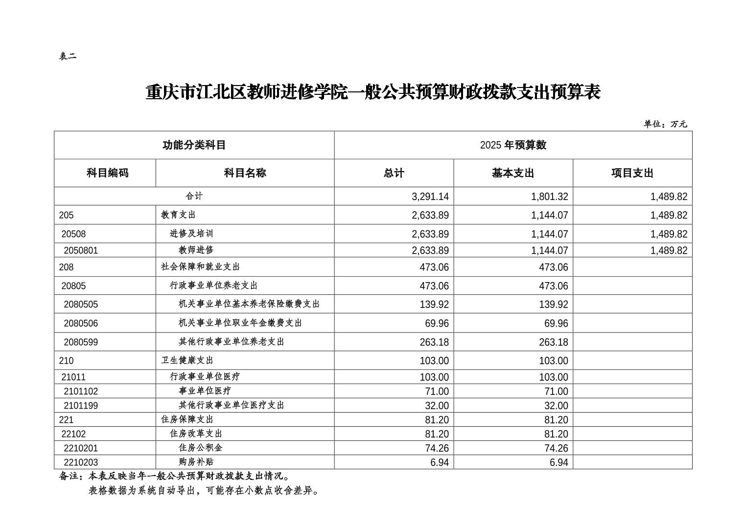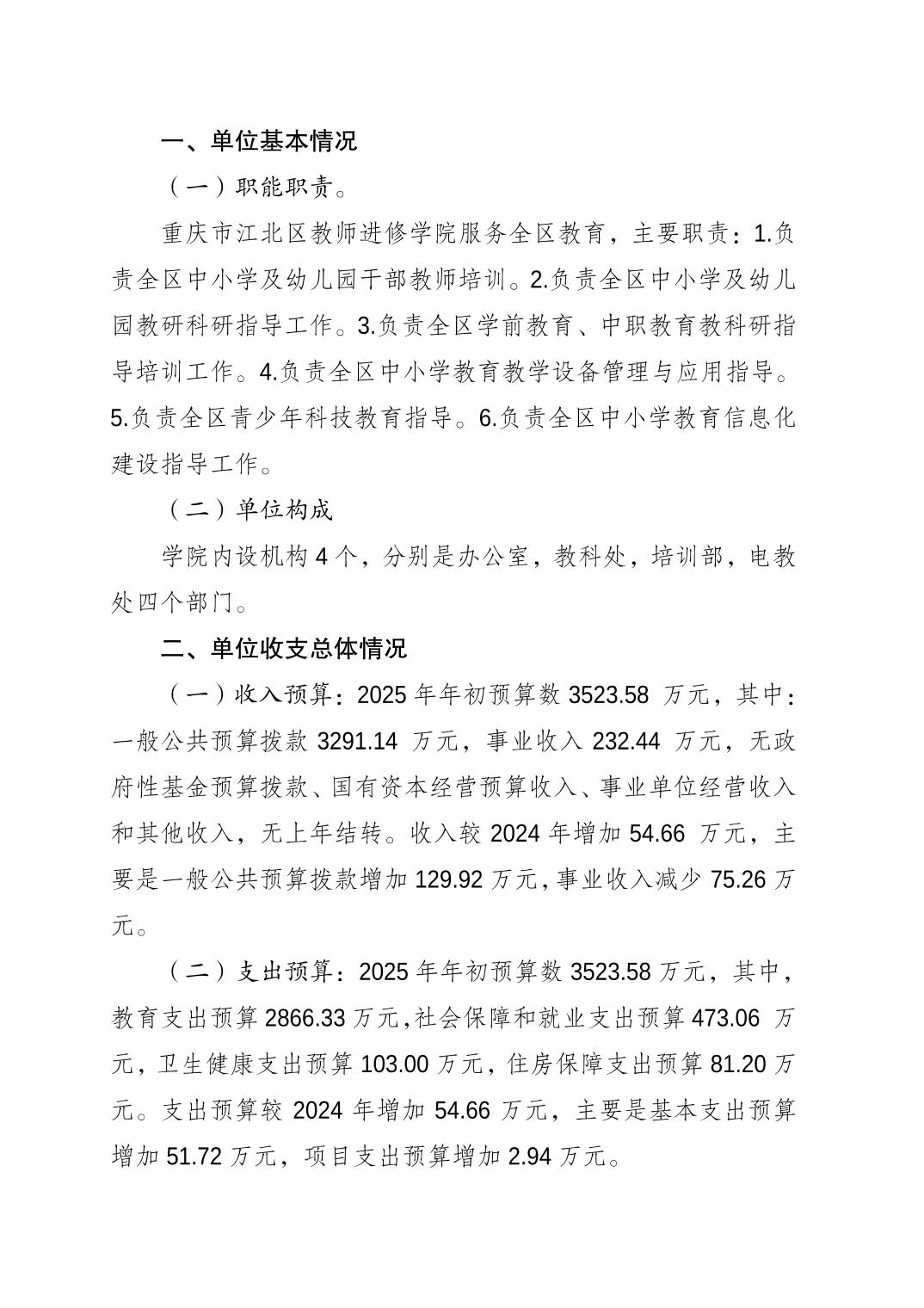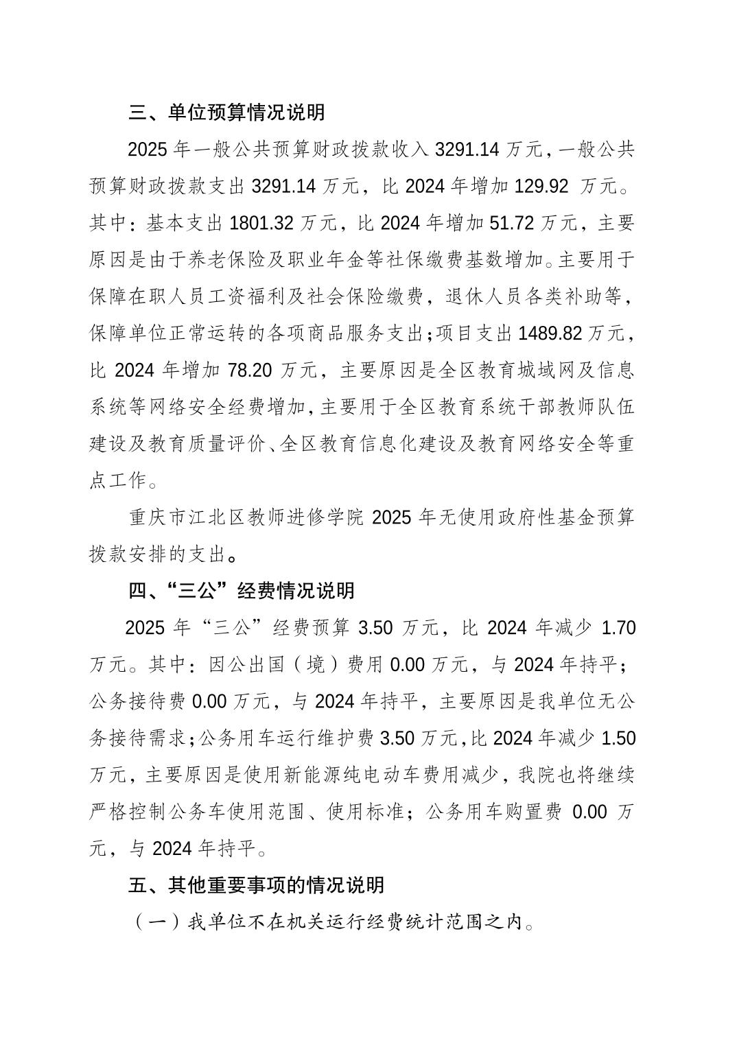 重慶市江北區教師進修學院2025年單位預算情況說明