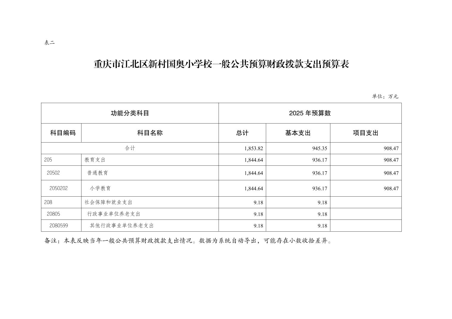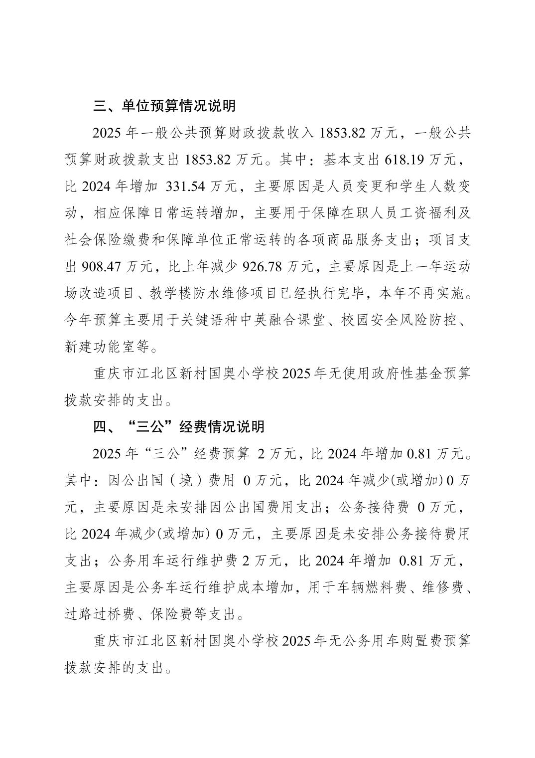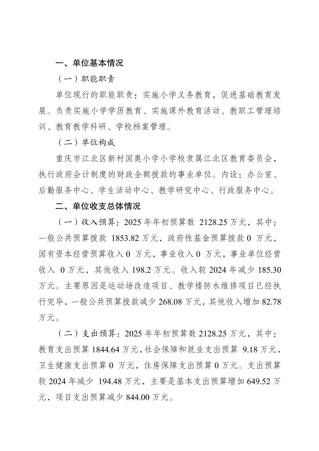 重慶市新村國奧小學(xué)校2025年單位預(yù)算情況說明
