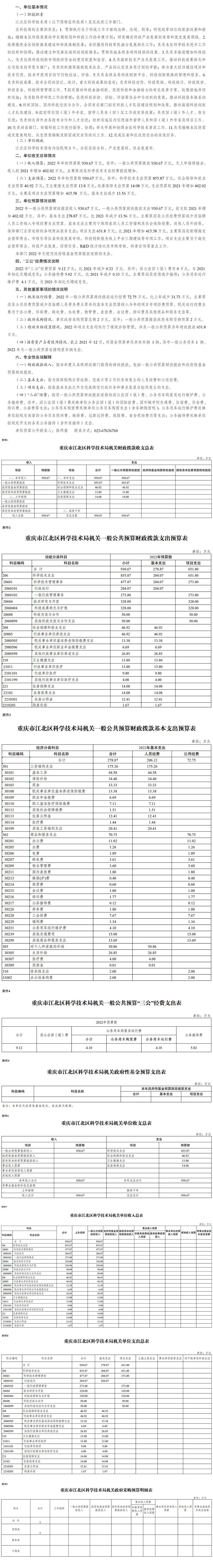 重慶市江北區科學技術局機關2022年單位預算情況說明