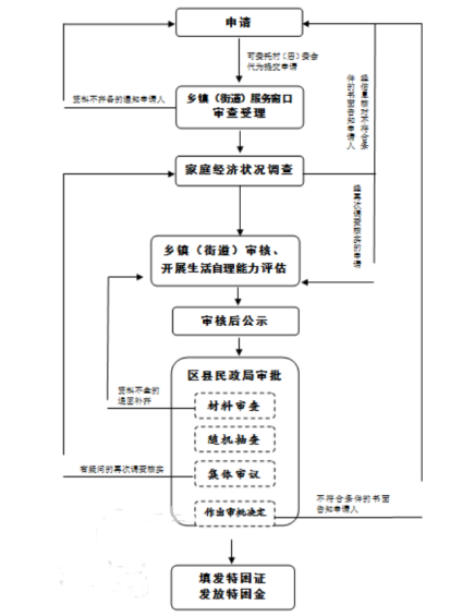由本人向戶籍所在地的街鎮(zhèn)提出申請?zhí)乩А1救松暾埨щy的,可以委托村(居)民委員會或者他人代為提出申請,對無民事行為能力等無法自主申請的,應(yīng)當(dāng)主動幫助其申請。