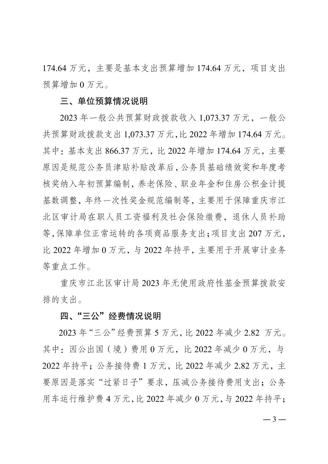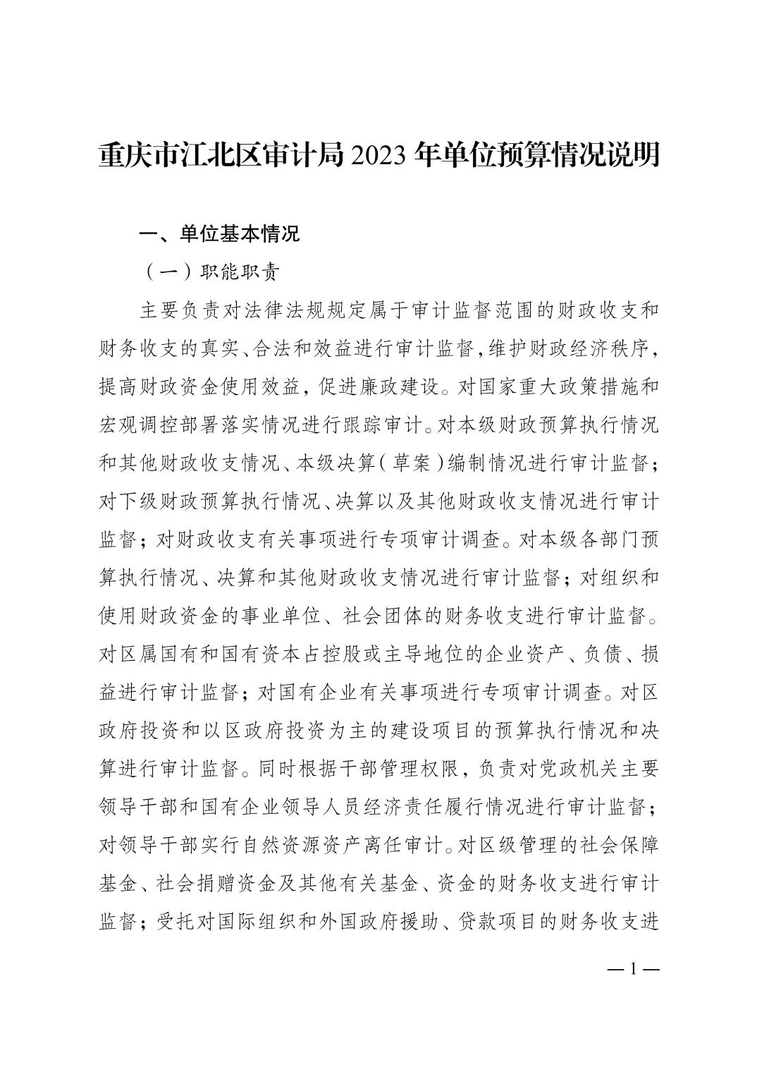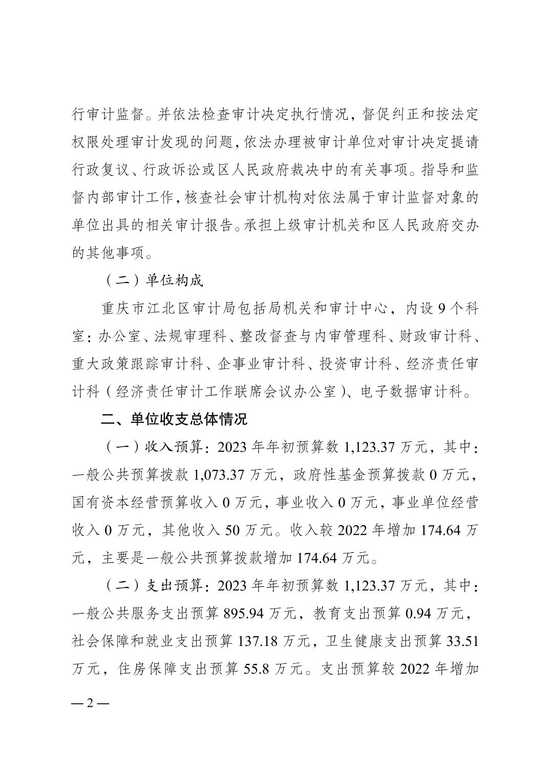 重慶市江北區審計局2023年單位預算情況說明