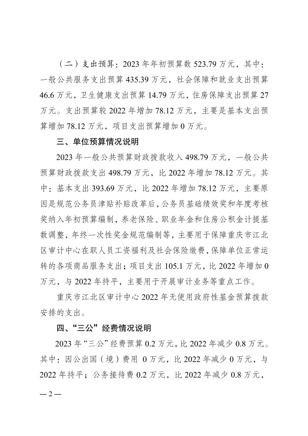 重慶市江北區(qū)審計中心2023年單位預算情況說明