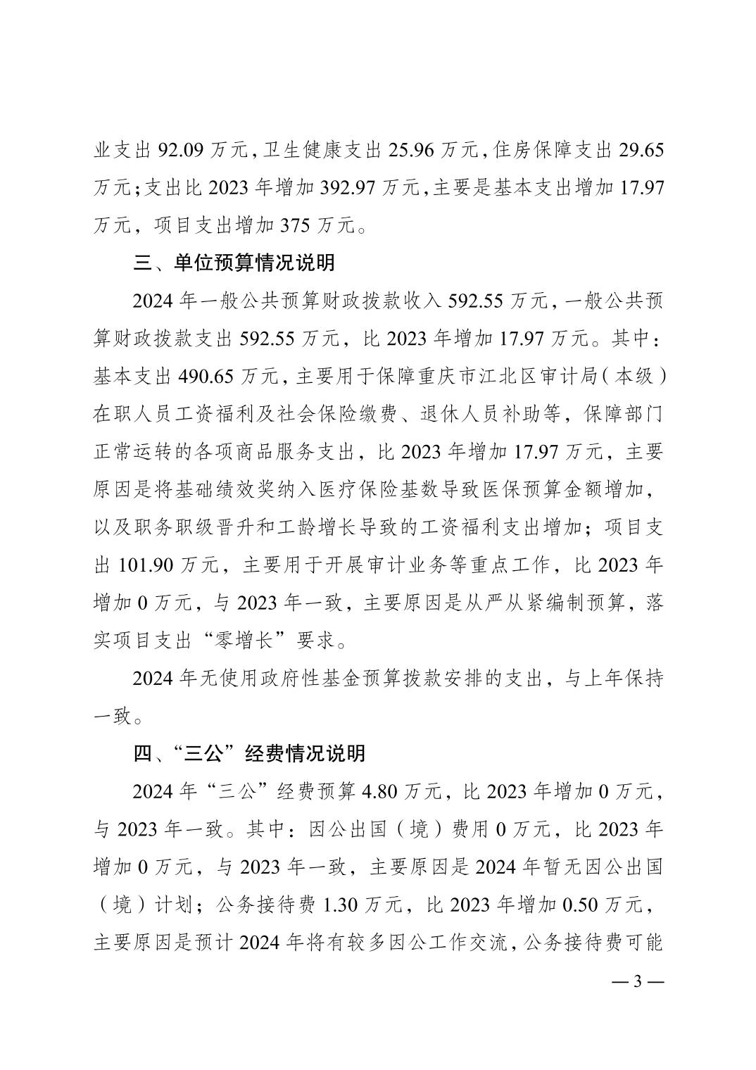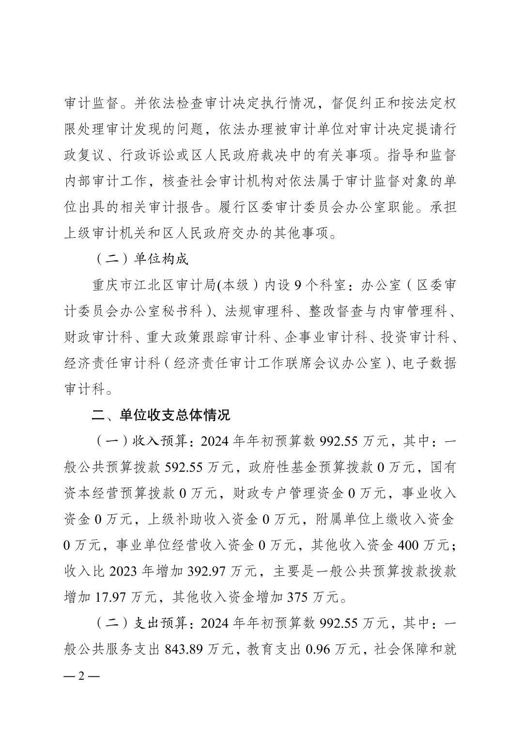 重慶市江北區(qū)審計局(本級)2024年單位預(yù)算情況說明