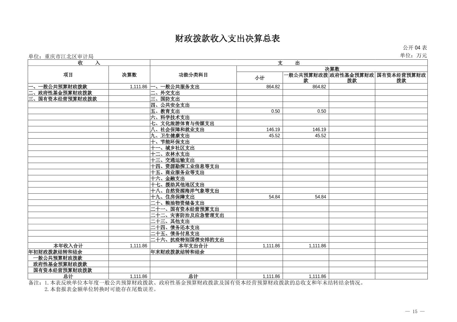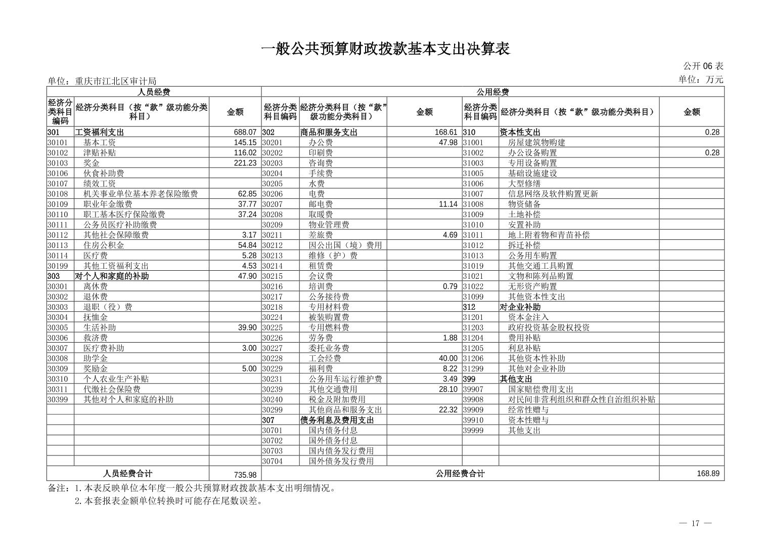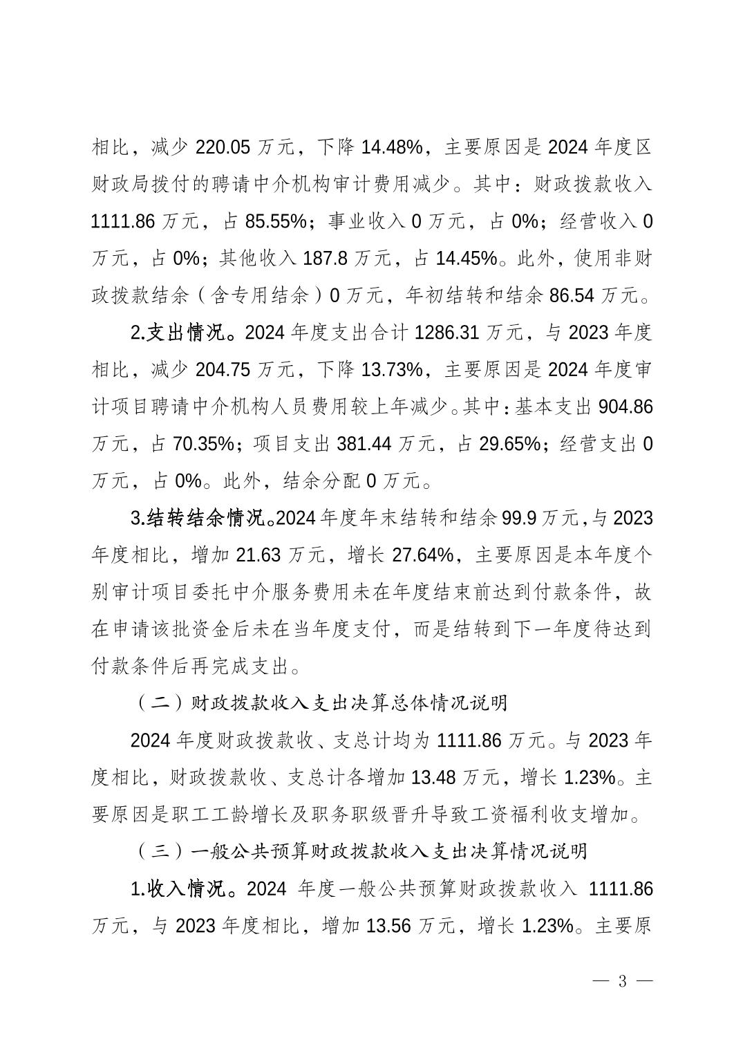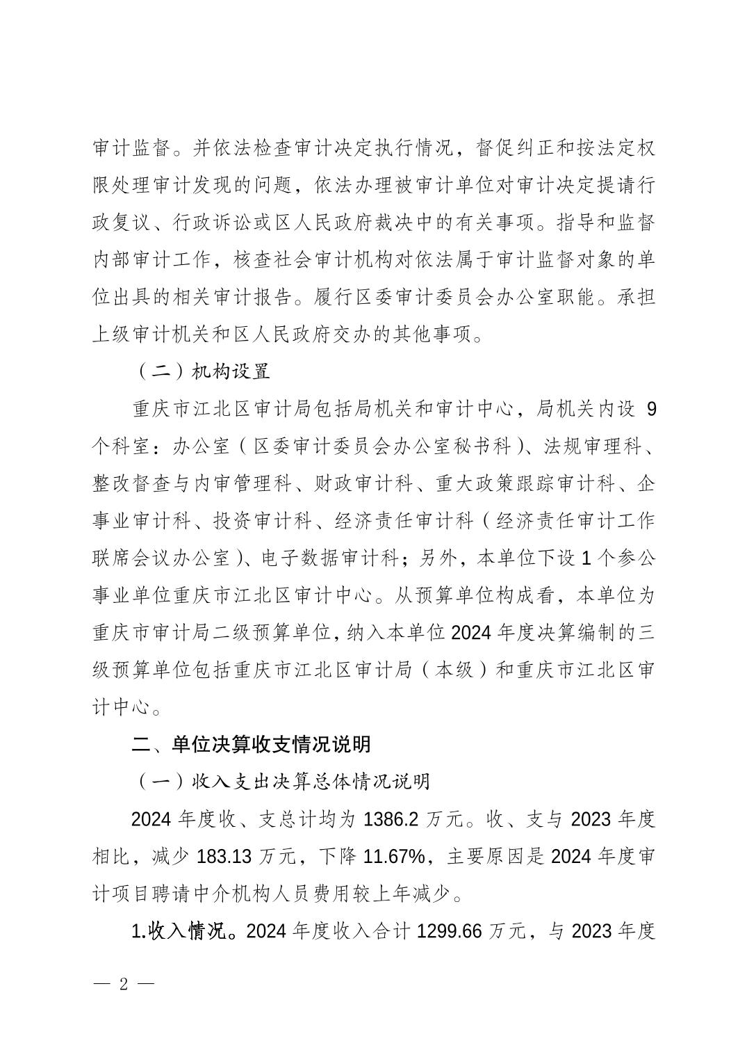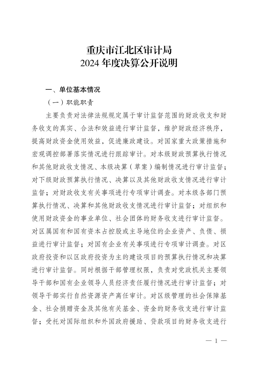 重慶市江北區(qū)審計(jì)局2024年度決算公開說(shuō)明