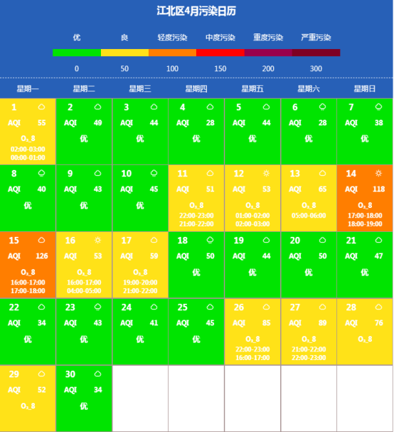 本月空氣質量“18優10良2輕度污染”,優良率93.33%。