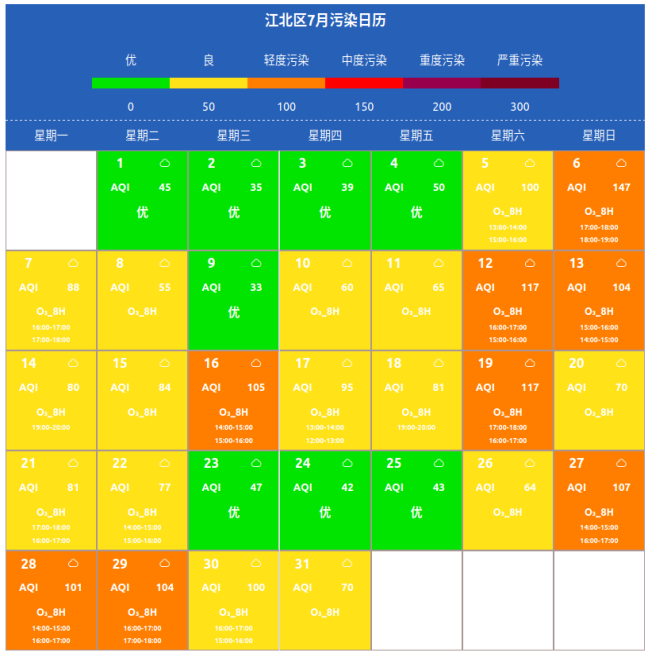 本月空氣質量“8優15良8輕度污染 ”,優良率74.19%。