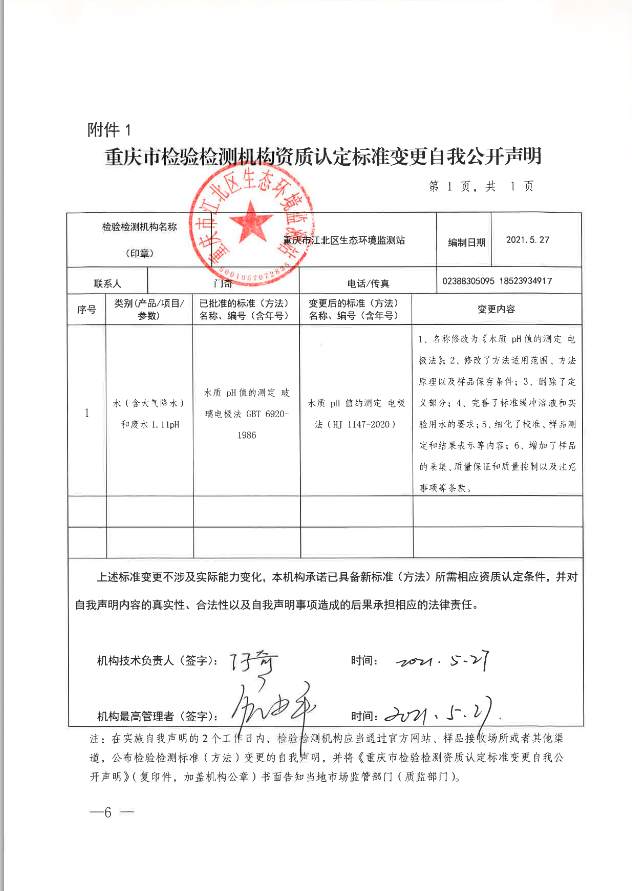 關(guān)于重慶市江北區(qū)生態(tài)環(huán)境監(jiān)測站水質(zhì) pH值的測定標(biāo)準(zhǔn)變更自我公開聲明