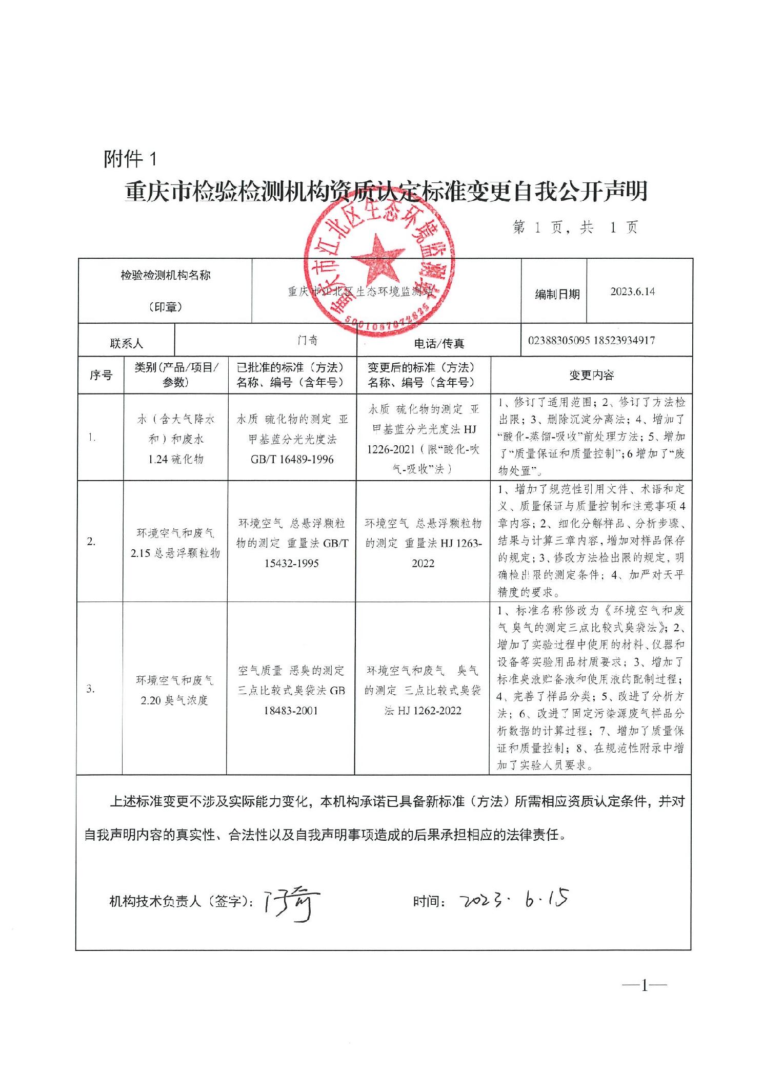 總懸浮顆粒物、臭氣濃度、硫化物變更自我聲明