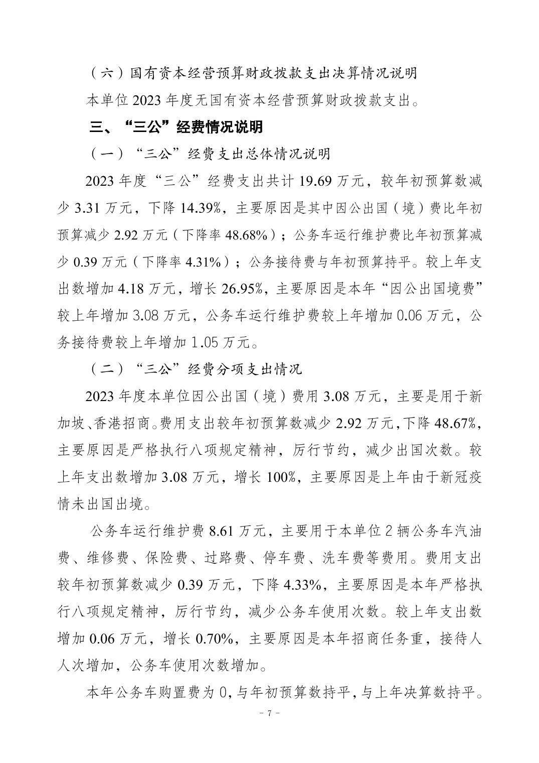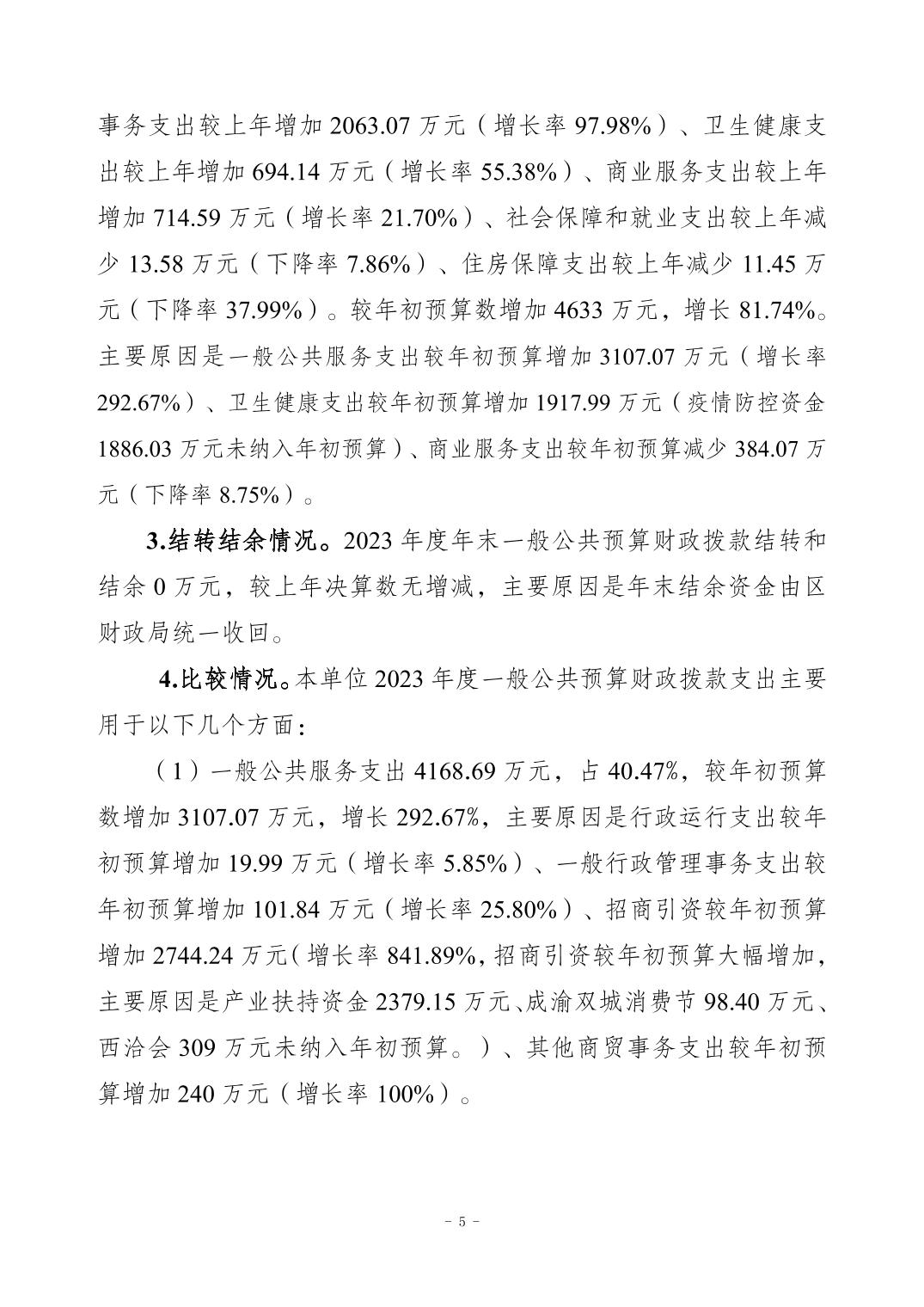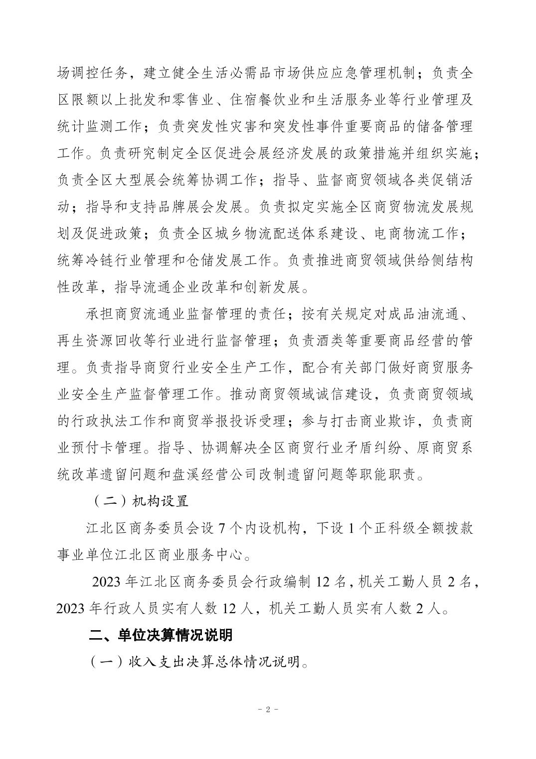 2023年江北區商務委員會(本級)決算公開說明