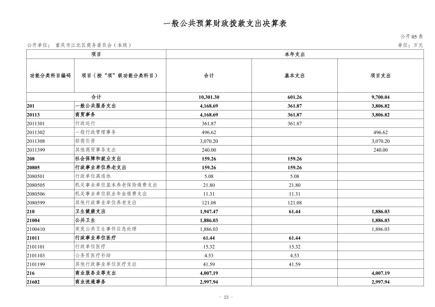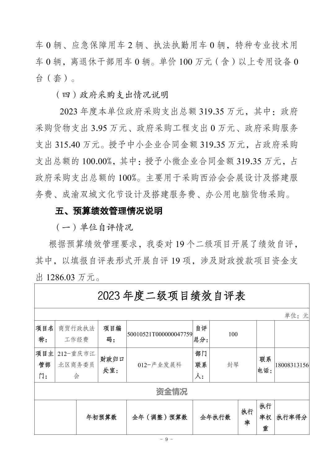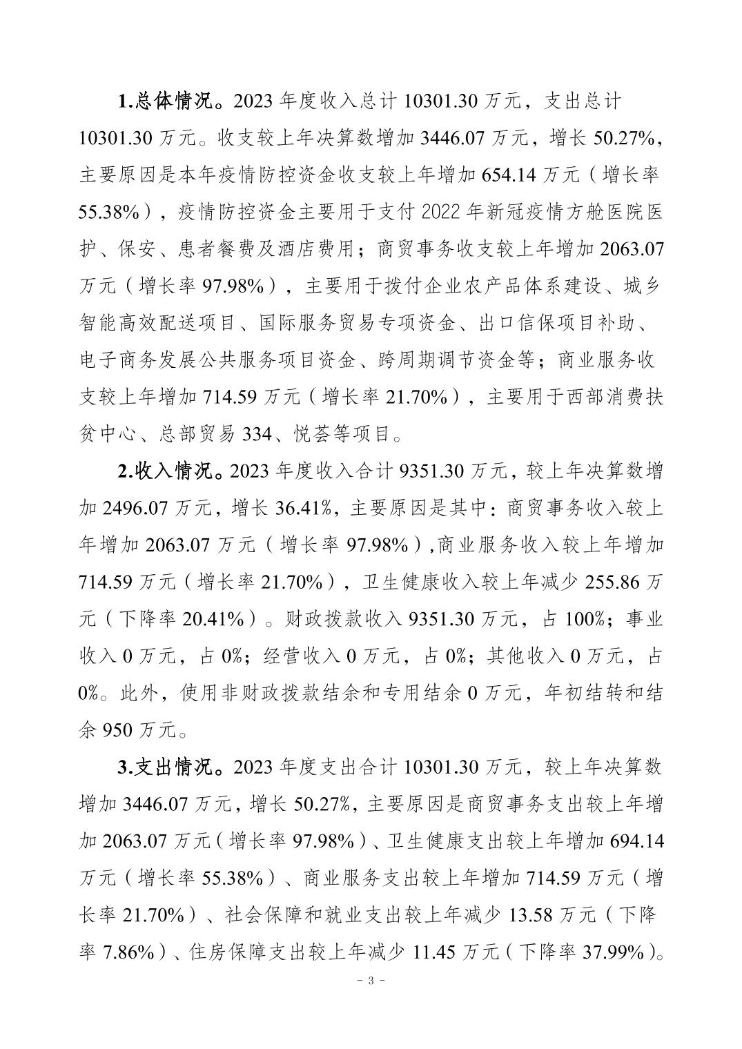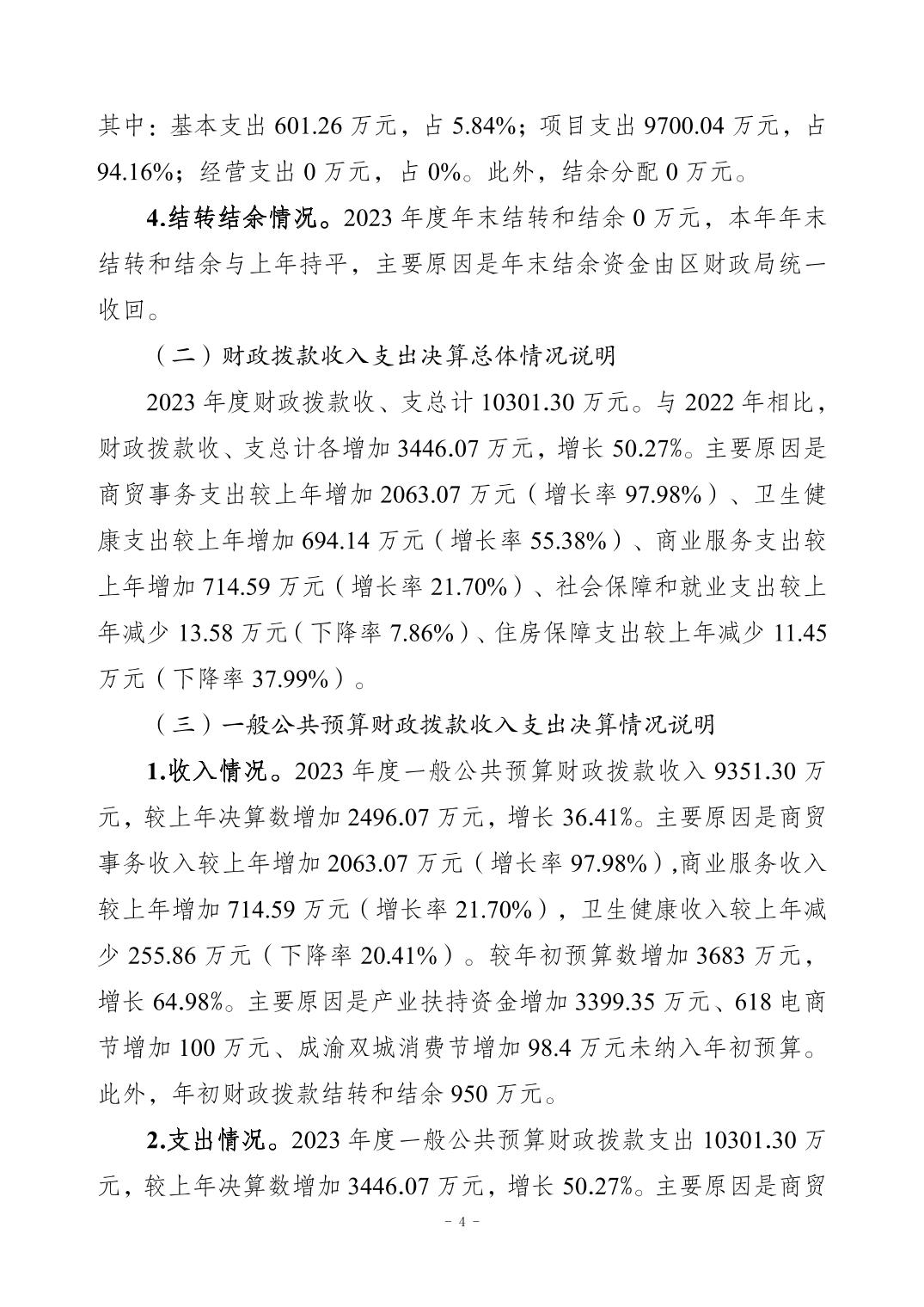 2023年江北區商務委員會(本級)決算公開說明