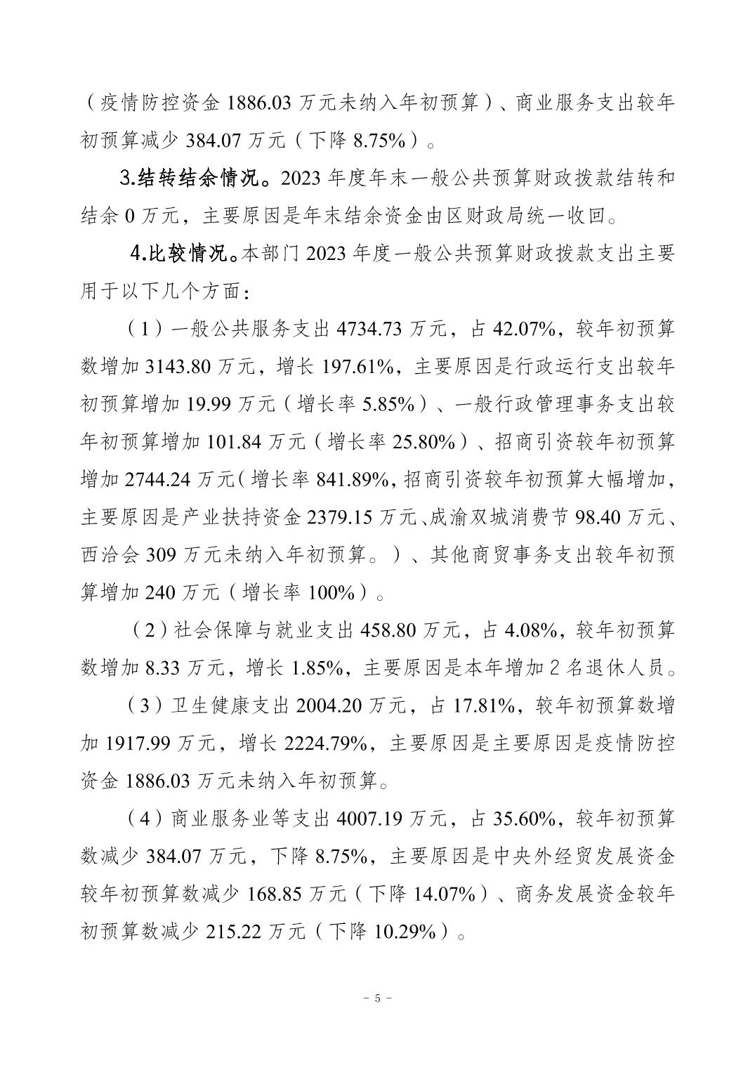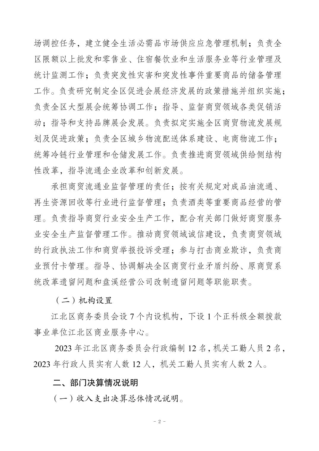 2023年重慶市江北區商務委員會部門決算公開說明