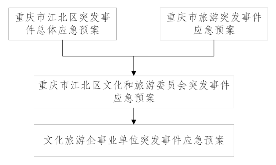 本預案向上銜接《重慶市江北區(qū)突發(fā)事件總體應急預案》及《重慶市旅游突發(fā)事件應急預案》,各文化旅游企事業(yè)單位制定的預案與本預案相銜接。