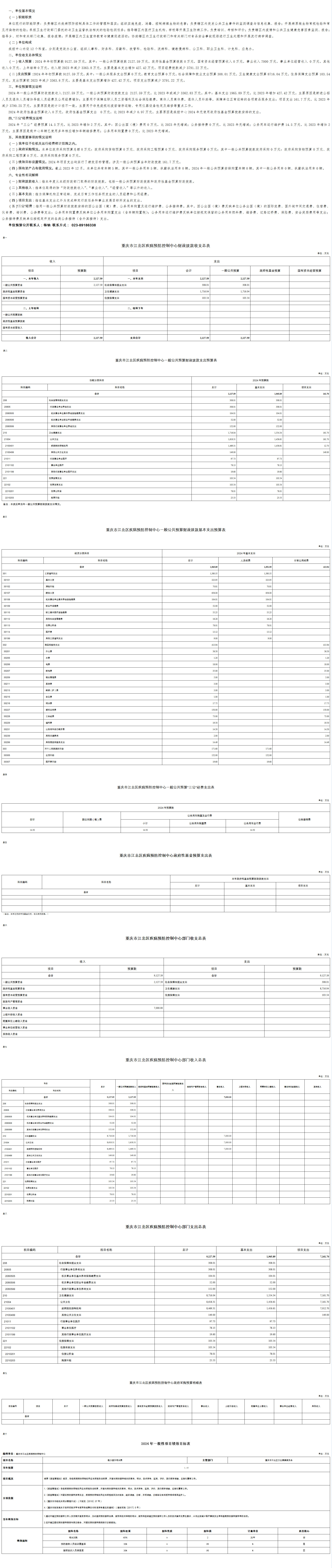 重慶市江北區疾病預防控制中心2024年單位預算情況說明